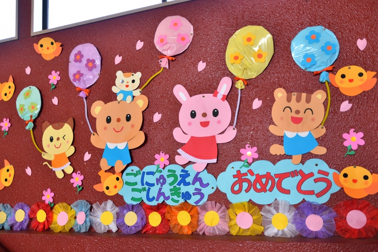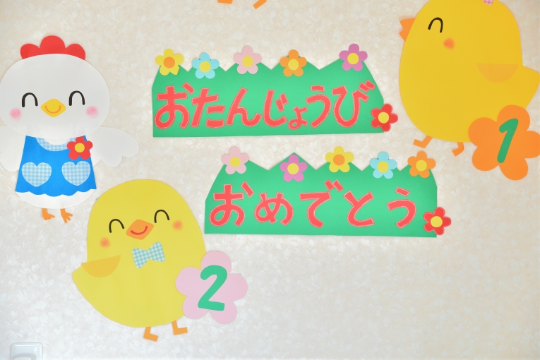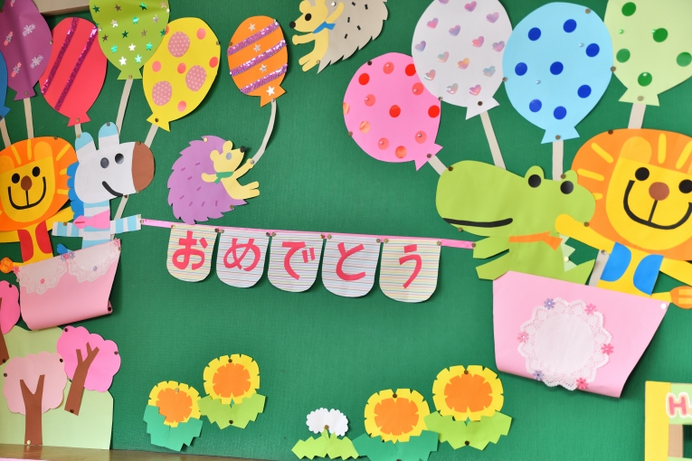 先生が作ったおめでとうの飾り♡ さあ どこかな?