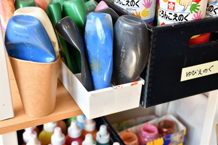 さあ?どこだろう?いろんな絵具がいっぱいあるねえ