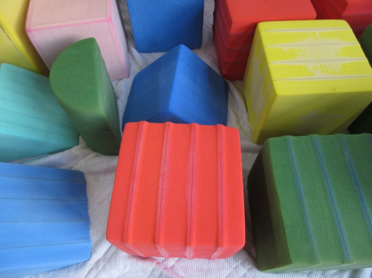 サッカーボールのアップにちょっと似てるね これもホールにあるよ。色々な形のものを組み合わせて「お城」や「基地」「船」とか作っちゃうよね