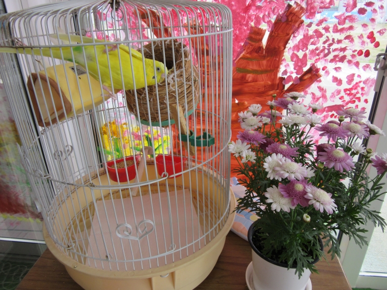 幼稚園のぴーちゃん元気です 今日も朝から大きな声でさえずっています。変わらない姿にほっとします。