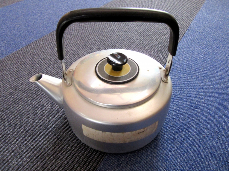 台所から持ってきました。しゅんしゅん湯気が立つ、あれです。お友だちが傍によると危ないよ~