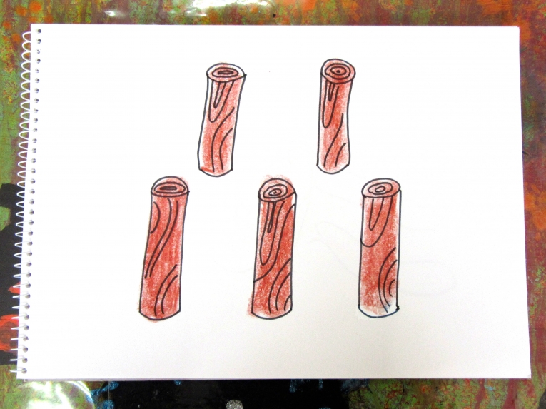 茶色の木・・ 木というより 棒・・・ 棒が 5本 ???
