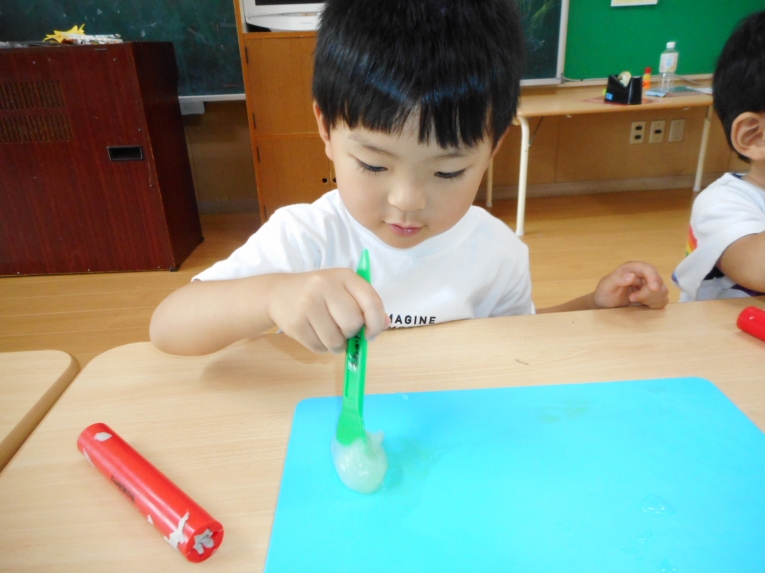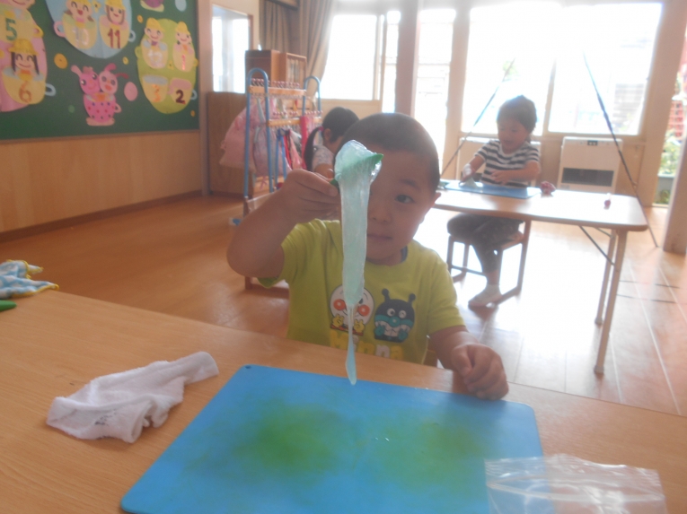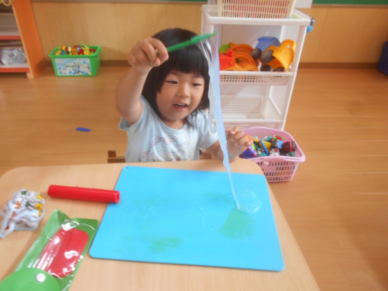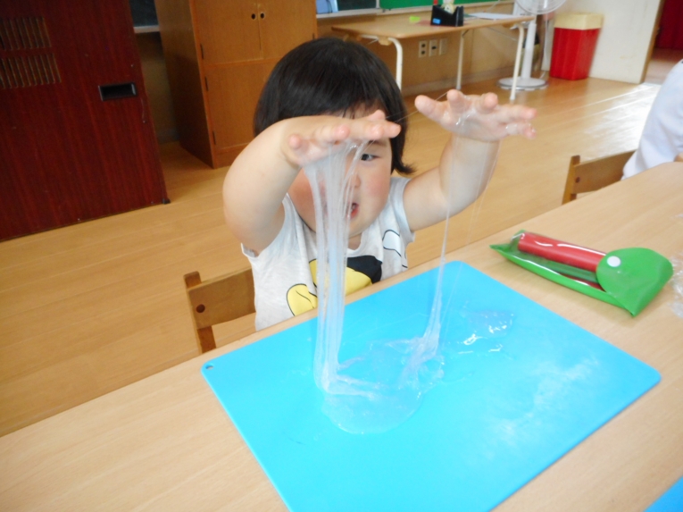 最後の最後は、スライム遊びびよーんと伸びて楽しかったね