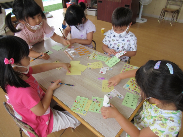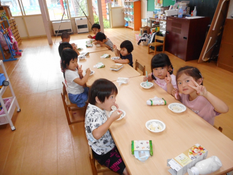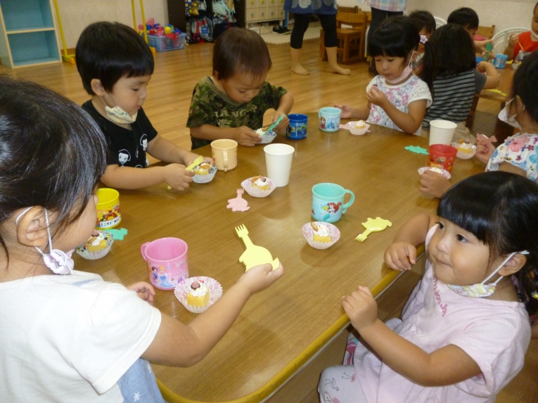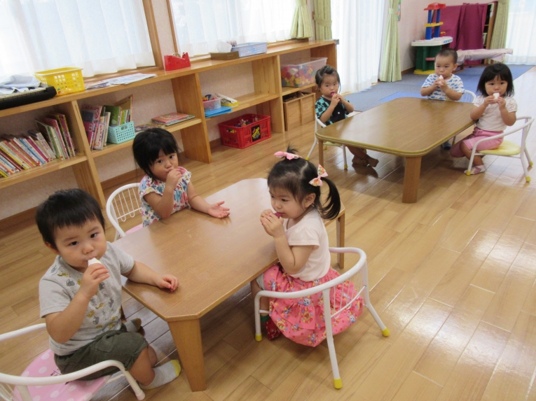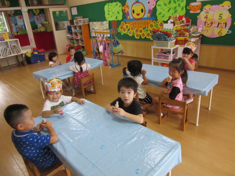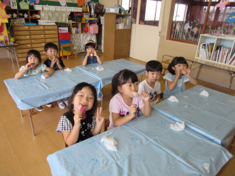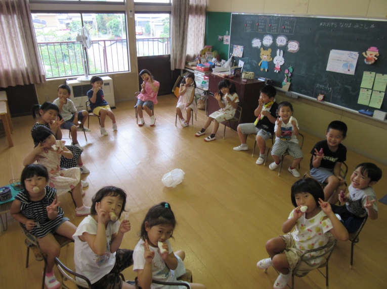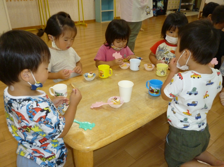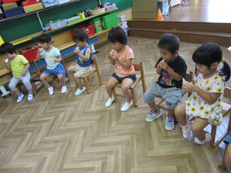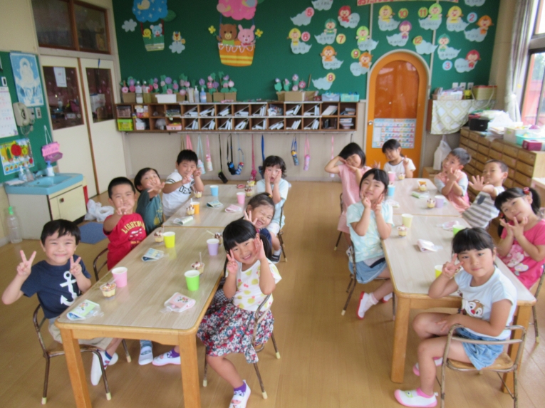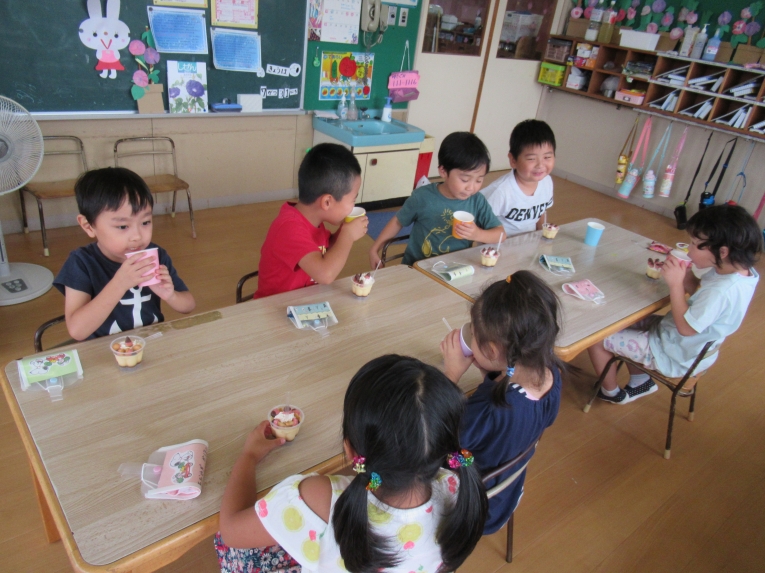 7月最終日(終業式の日)みんなで、1学期楽しかったね、頑張ったねの「おやつパーティー」をしました。