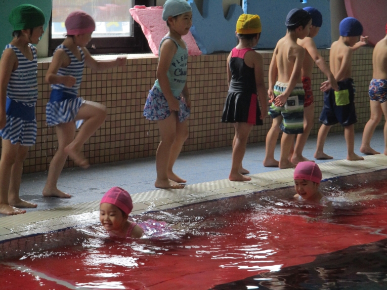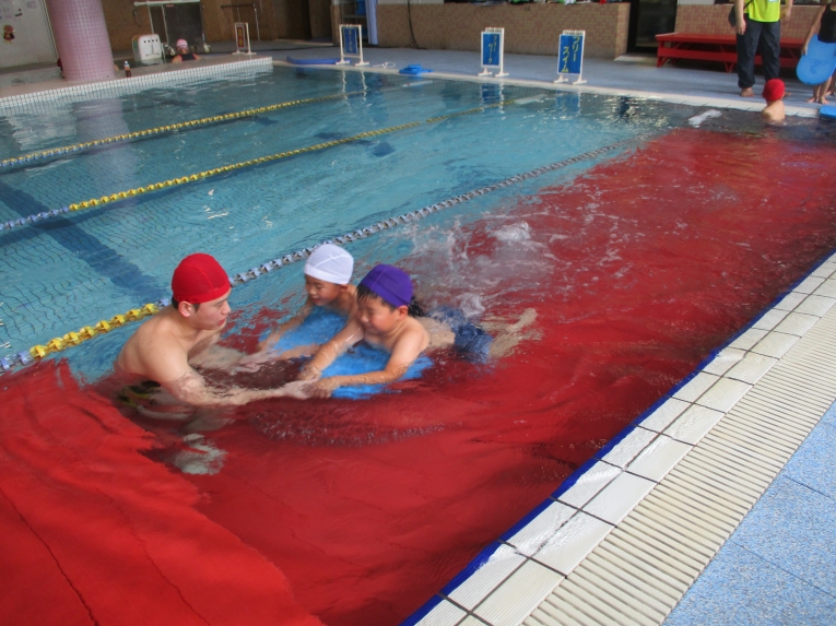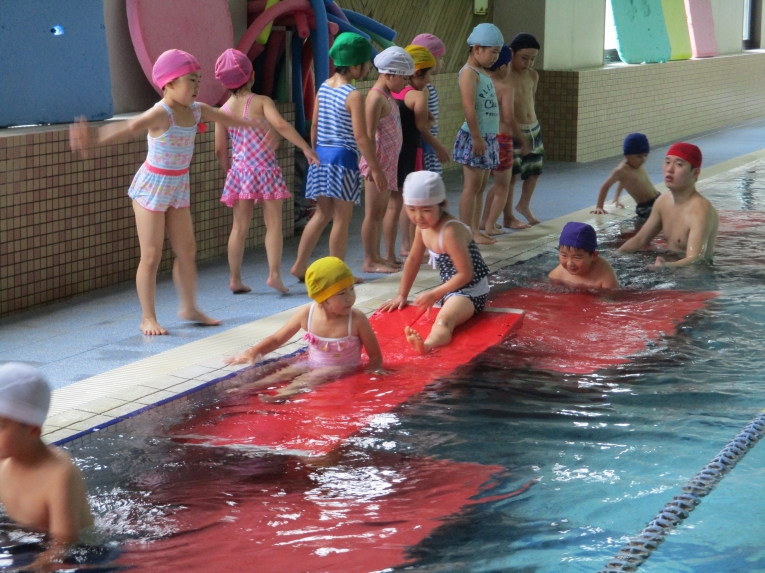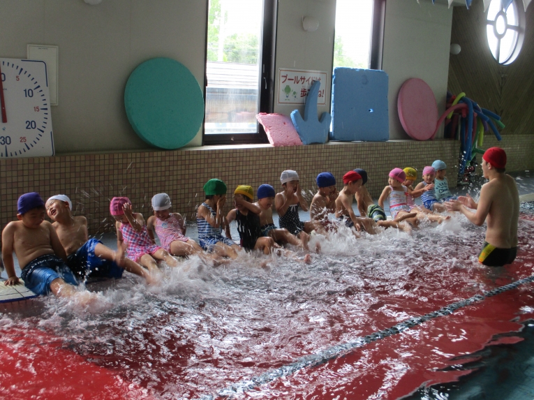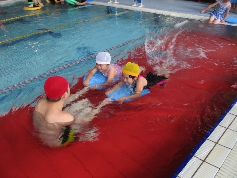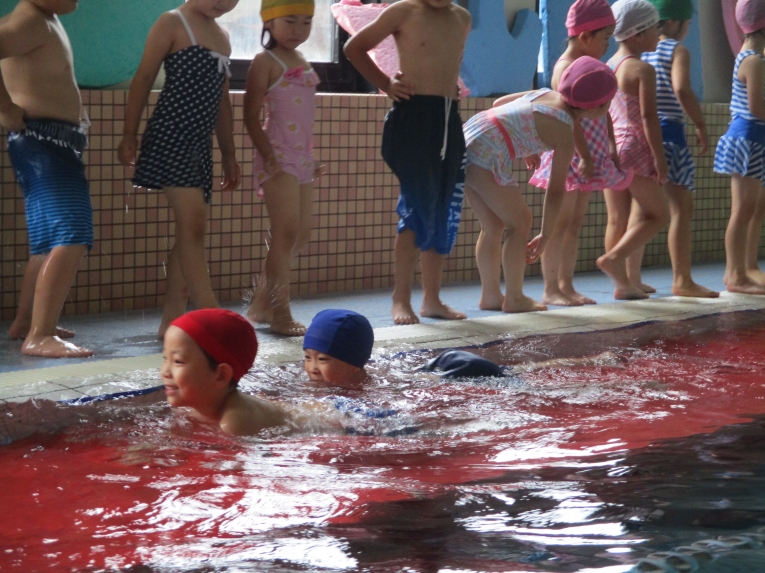 今回は2グループ一緒に、コーチに教えていただきました!初めはバタ足をしたり、水に入ってお顔を頑張ってつけてみたり・・
