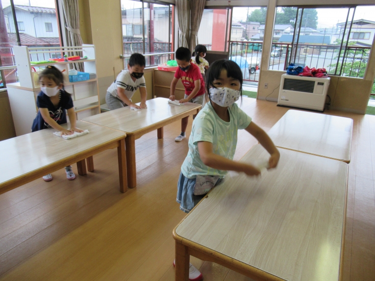 引き出し整理や保育室の雑巾がけもして、締めくくりました