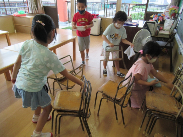 その後は、お部屋のお掃除をして、「2学期もよろしくね」とお部屋に伝える子どもたちでした♪