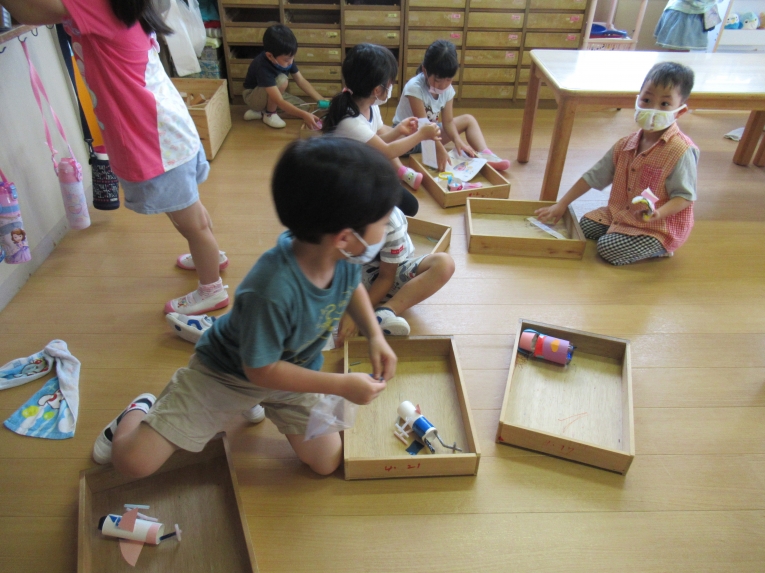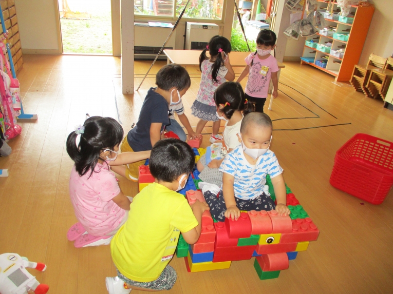 7月は雨の日が多かったですね!お部屋でもたくさん遊びましたよ
