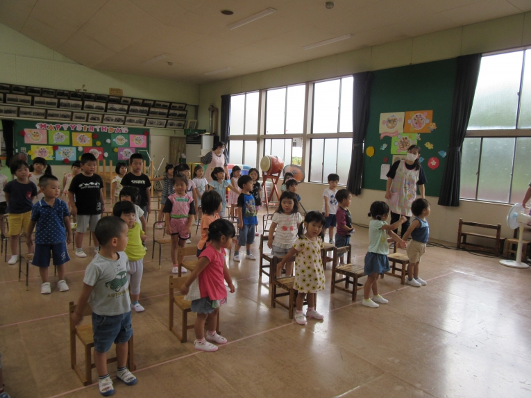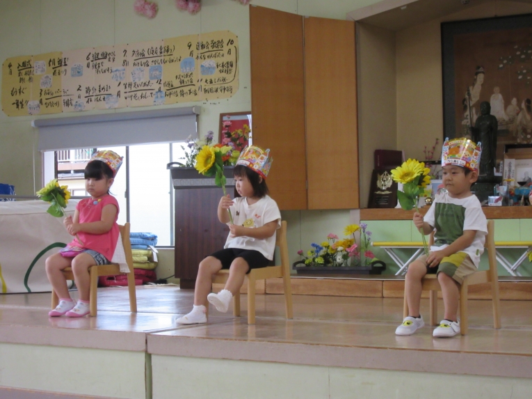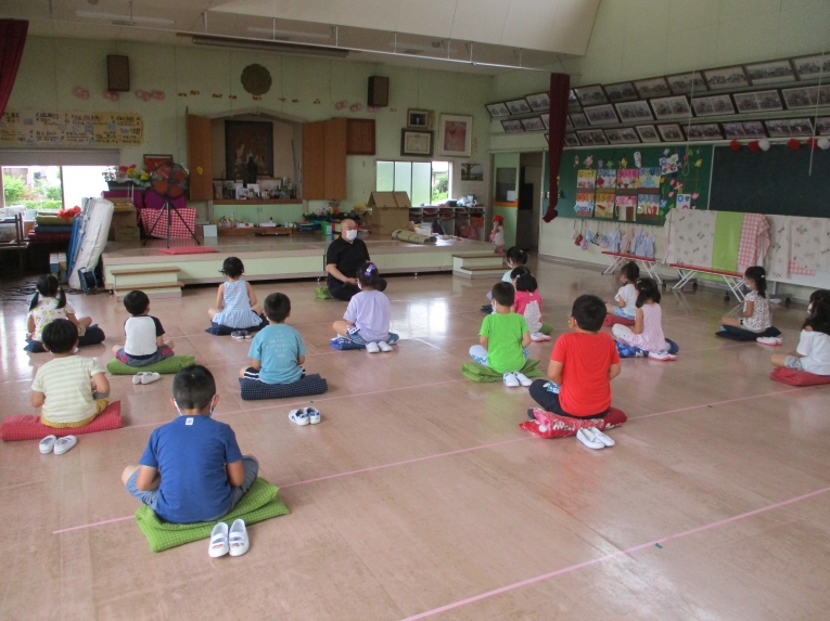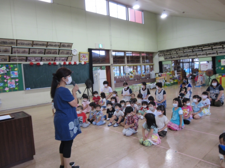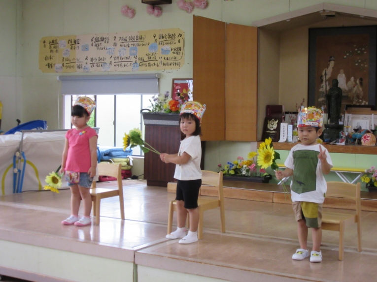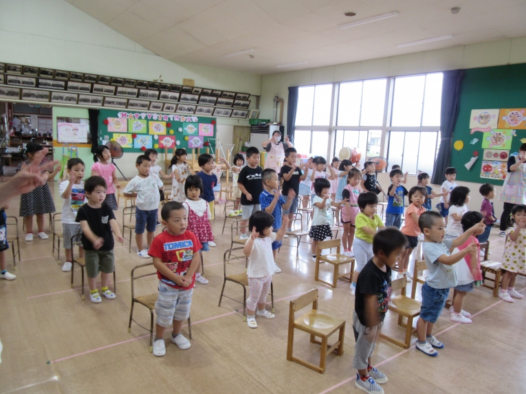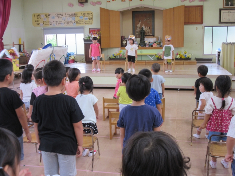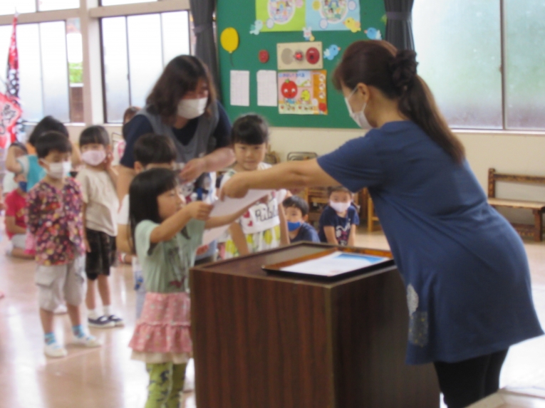 7月31日(金)、一学期終業式が行われ、園長先生よりたくさん誉めていただき、大満足の子どもたちでした。