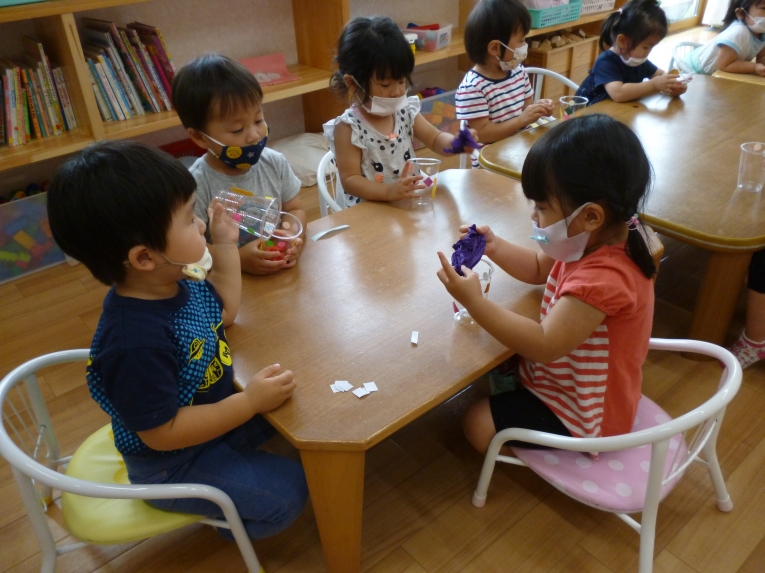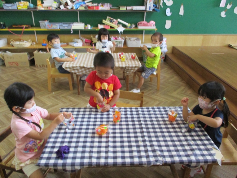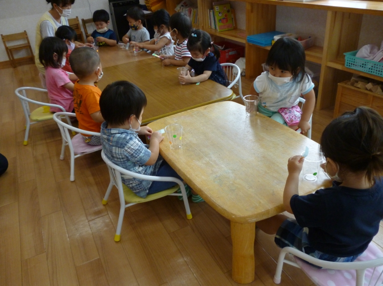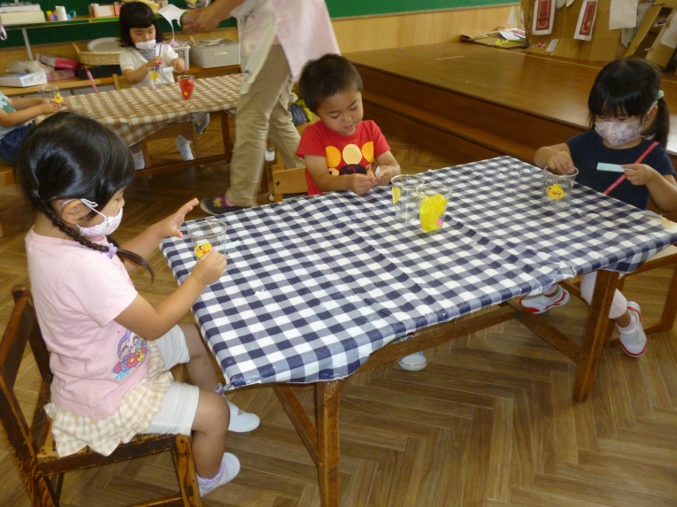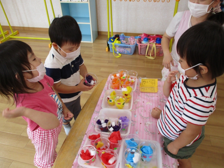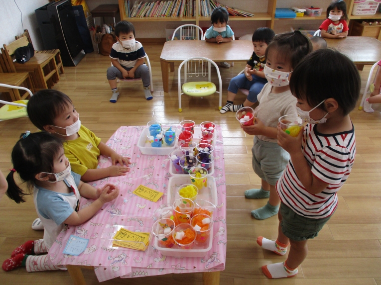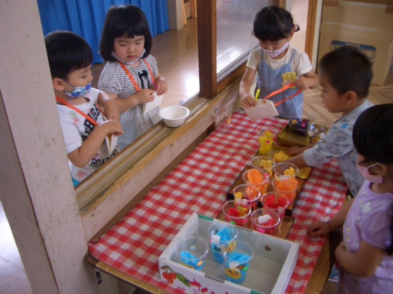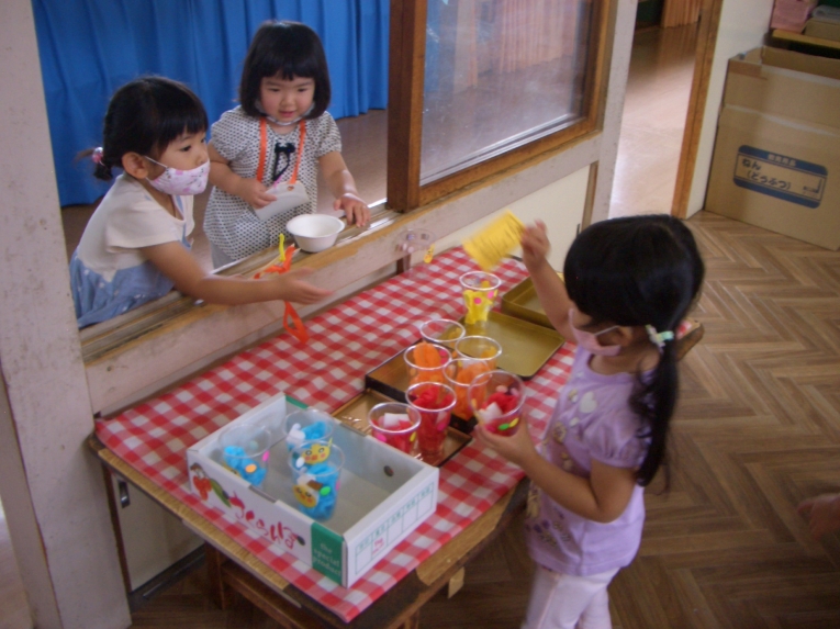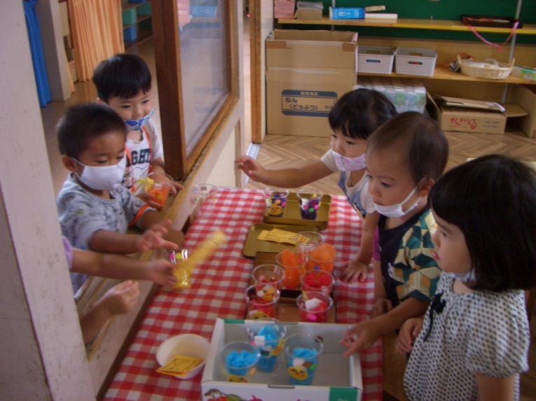とっても上手にできましたねいよいよ、みんなで、ジュースやさんごっこをして遊んでみましたよ