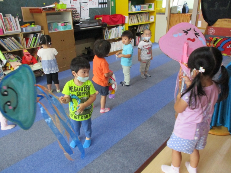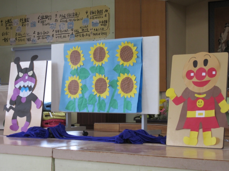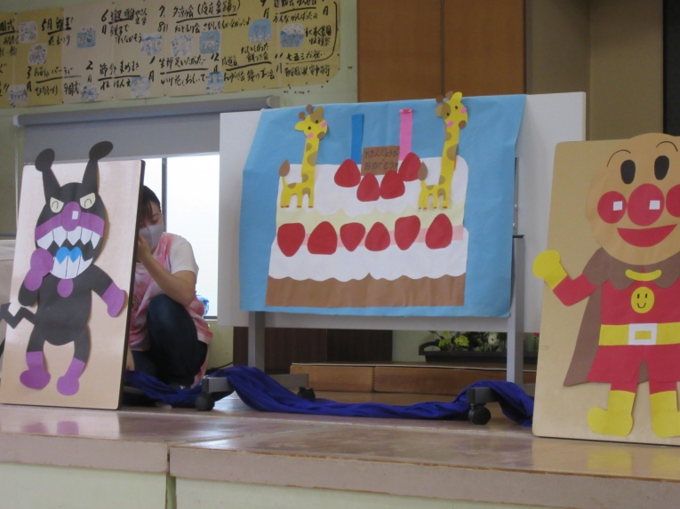 次は、先生からの出し物アンパンマンとバイキンマンも出てきて、楽しかったね