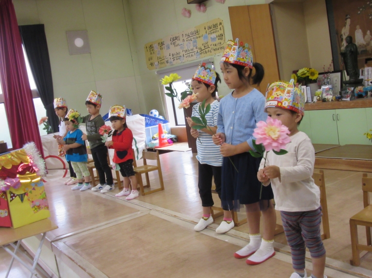 次は、9月のダリアをもったお誕生日のお友達に、みんなから「HAPPY BIRTHDAY おめでとう」の歌のプレゼント♪