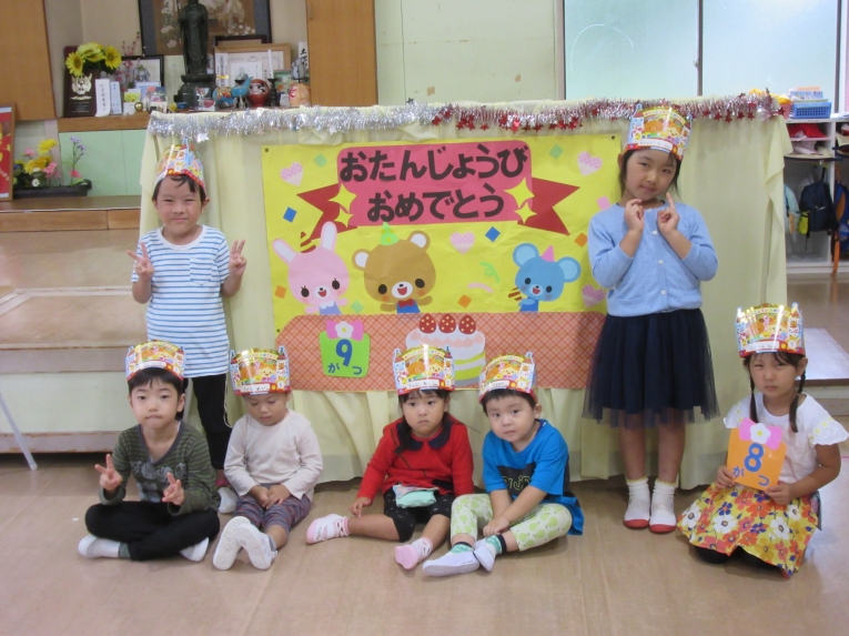 9月生まれのお友達お待たせいたしました! 暑い暑い夏が終わって、涼しい秋の風が吹いてきた9月の終わり・・ お誕生会がありました。