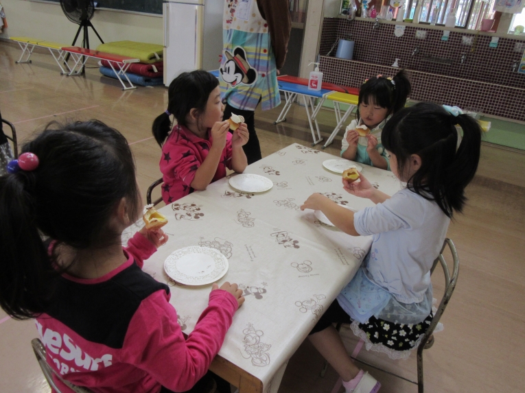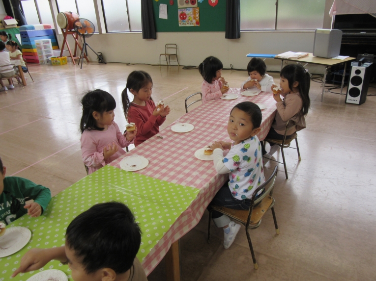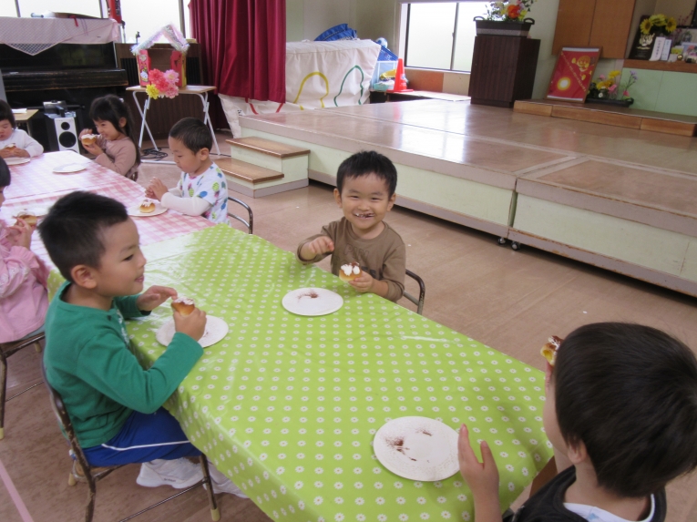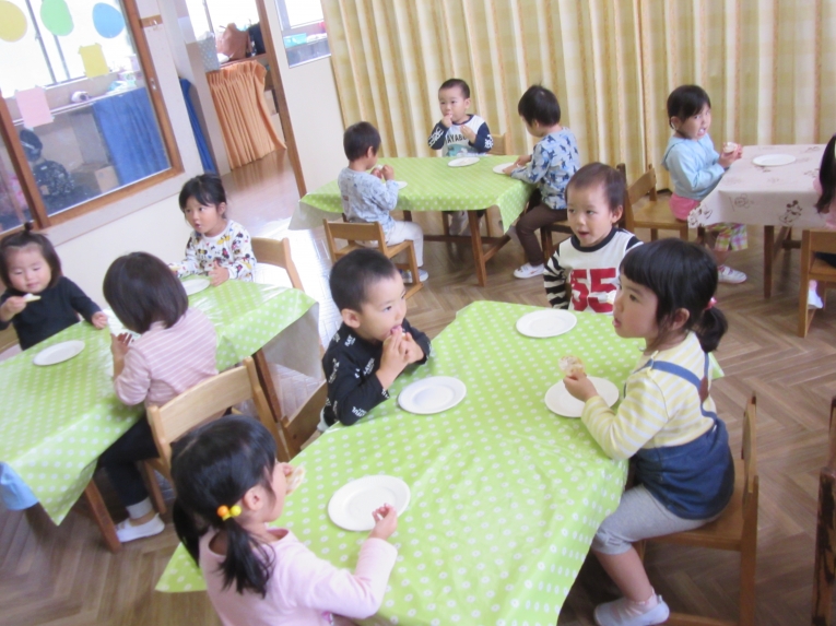うめぐみさんもゆきぐみさんも にっこにこ! みんなおなかすいてたのねー