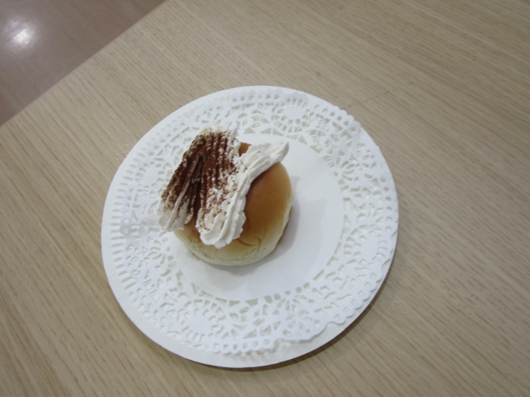 名づけて「出た出た月が!」 小さな丸いパンに生クリームの雲・・そこにココアパウダーで・・夜の月をイメージしてみました~