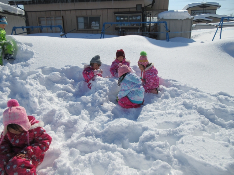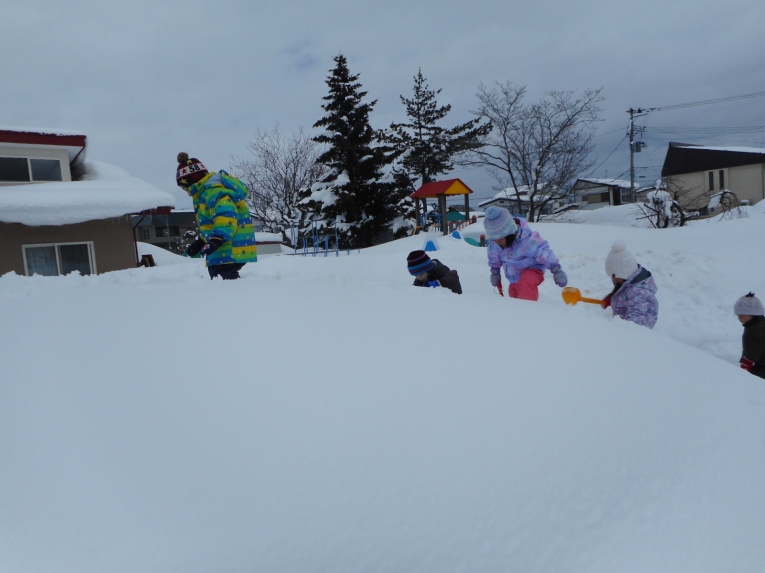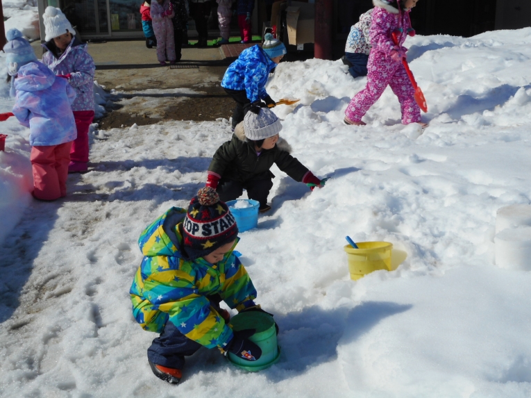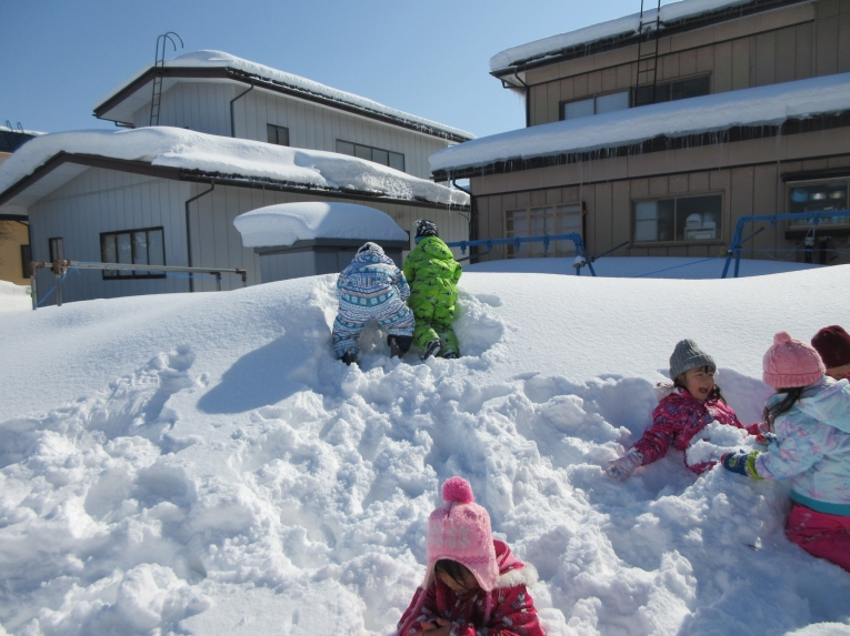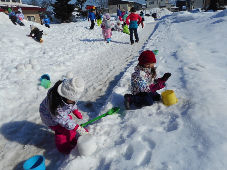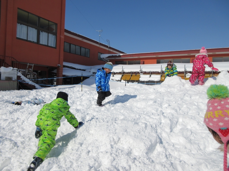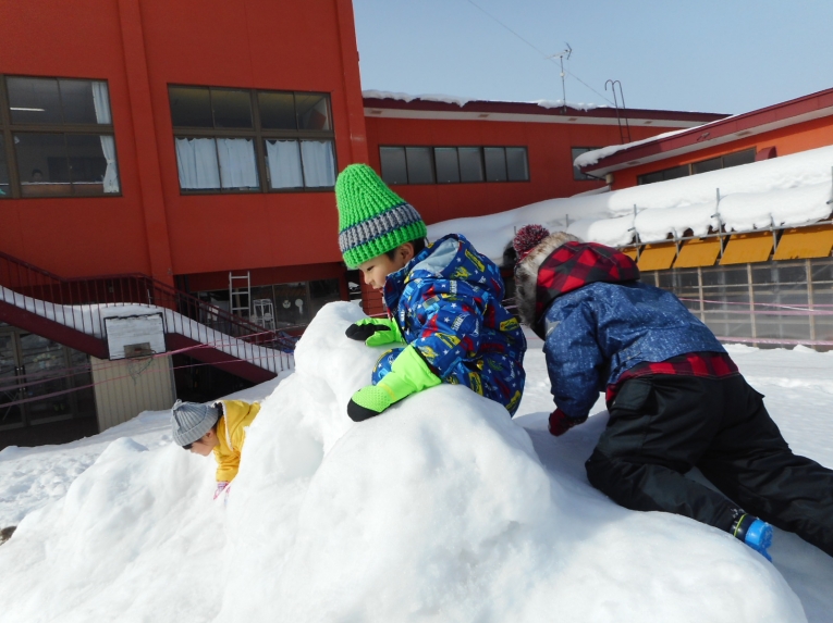 3学期が始まってからのお楽しみは、もちろん雪あそび!今年はたくさん遊べそうです高い山からの尻滑りや、雪だるまやかまくら作りたくさん楽しい笑顔が見られました!天気がいい日にはたくさん遊びたいです