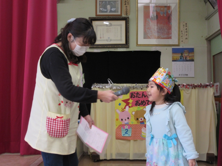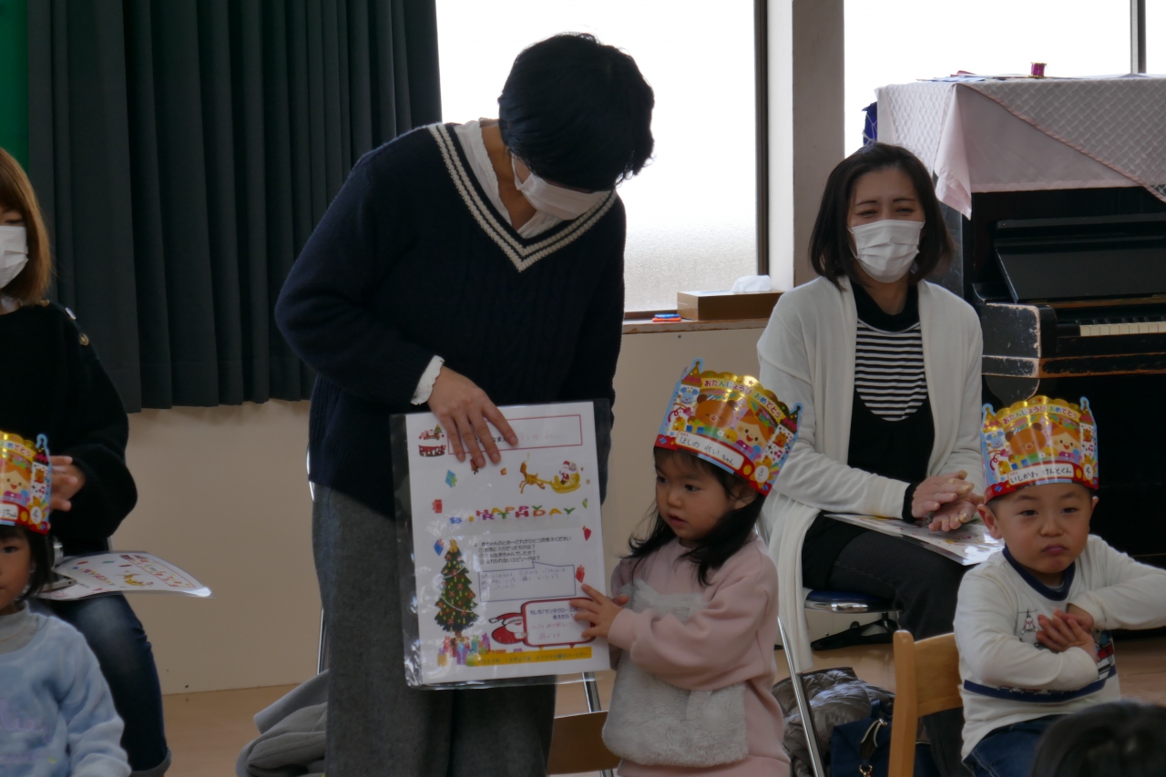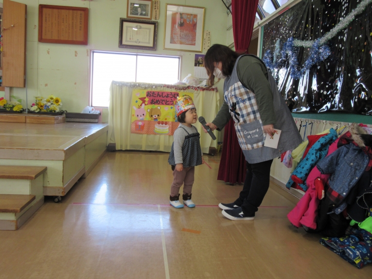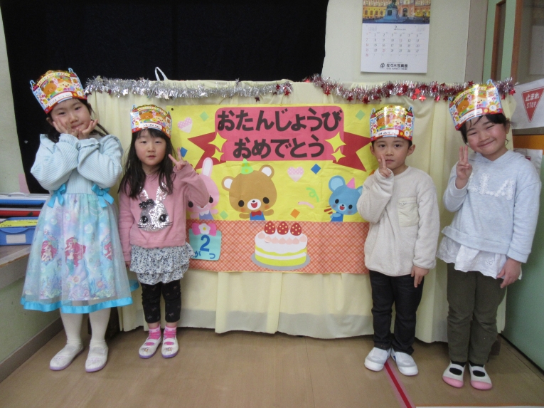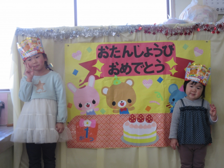 1月21日(木)は、1月生まれのお誕生会が行われました。1月生まれは2名のお友だち・・・待ちに待ったお誕生会だったので、嬉しさもひとしおだったようです。寒さに負けず元気に遊んで、これからもますます元気で大きくなってくださいね。