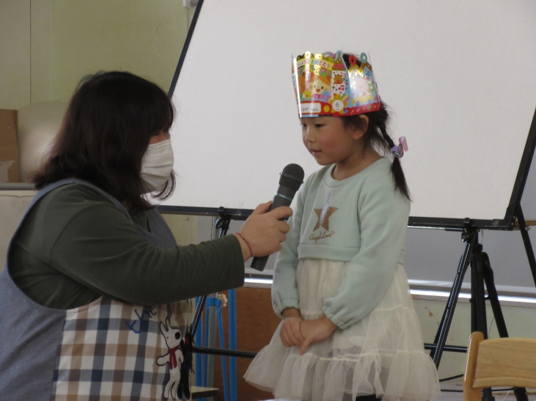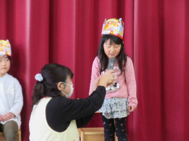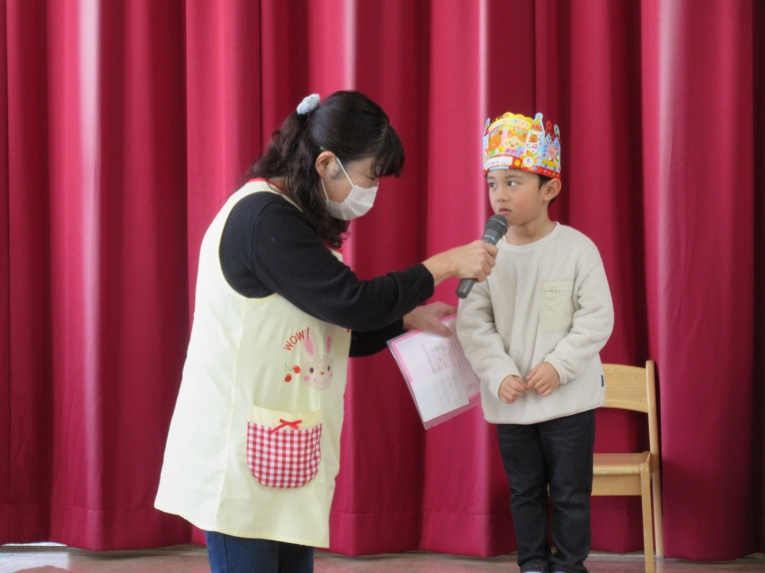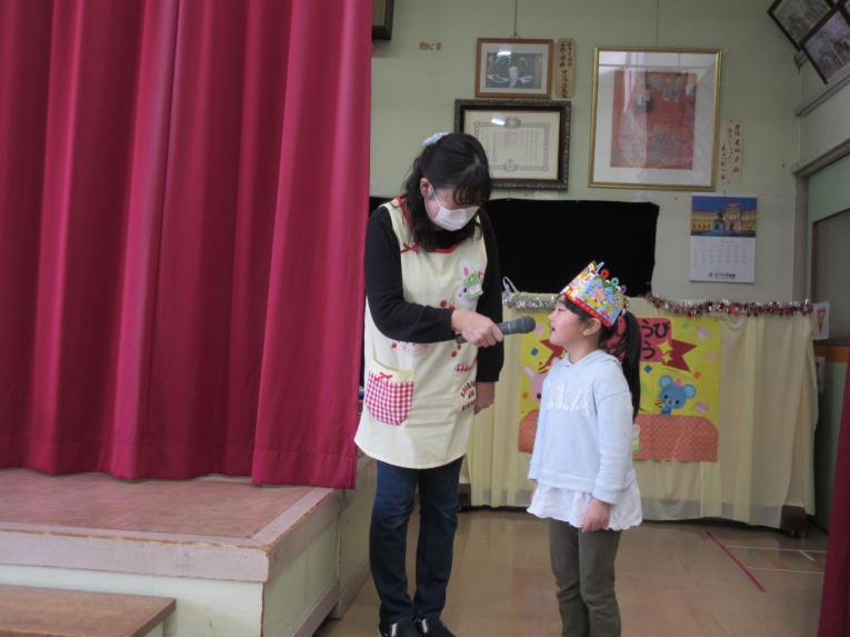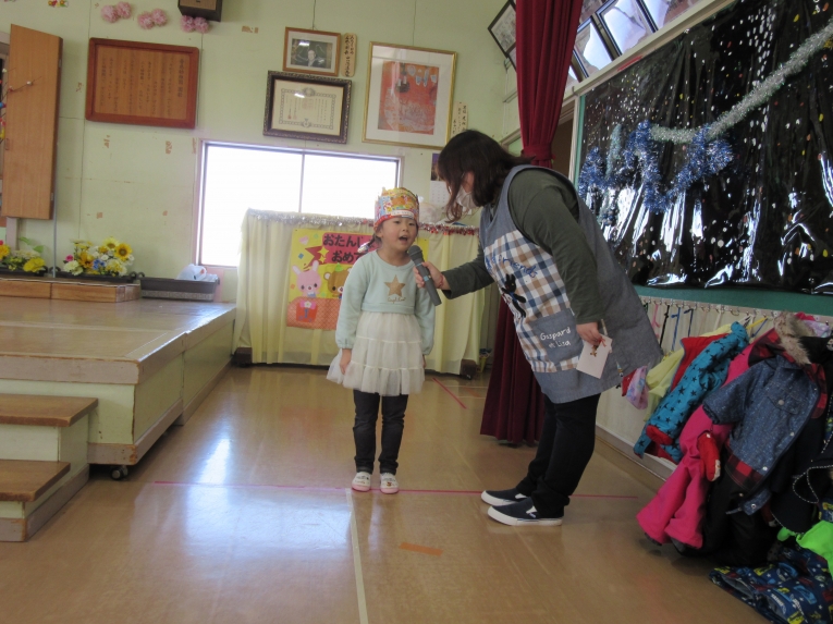 園長先生からのお祝いの言葉をもらって、いよいよインタビューです