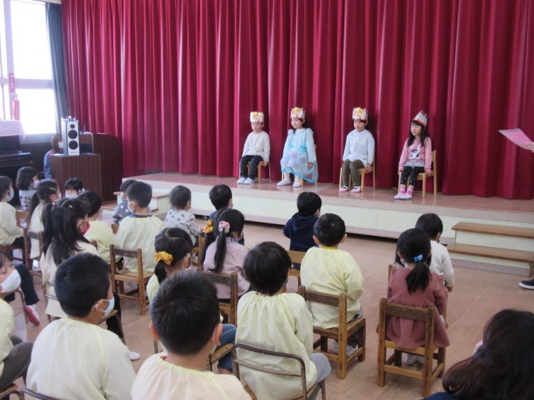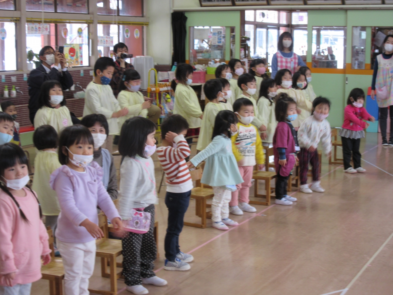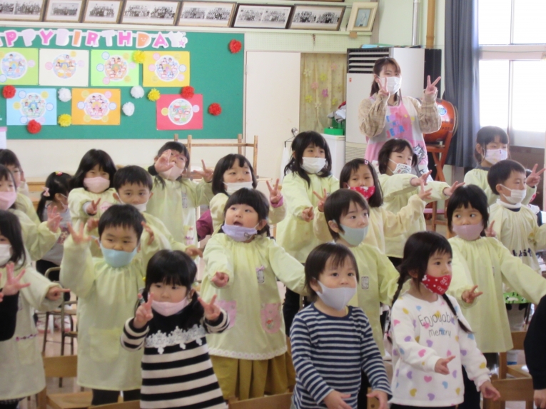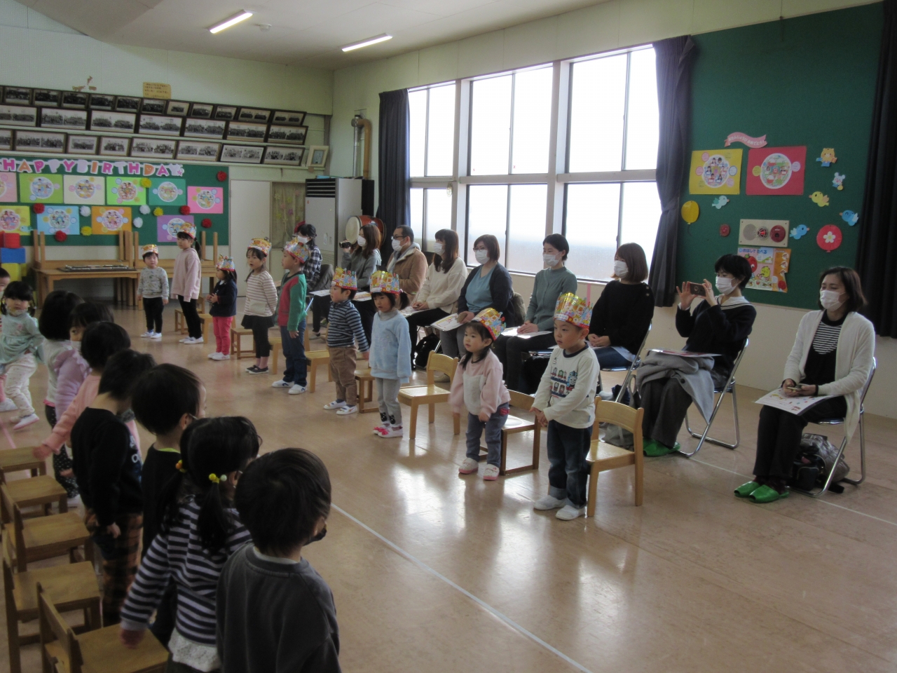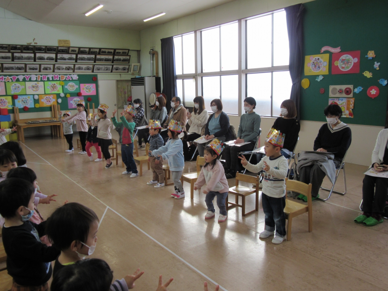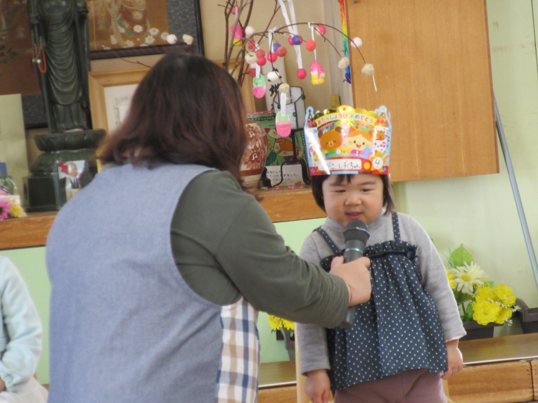 今月は4名のお友達のお祝いでした入場では、元気な声でお返事してくれました