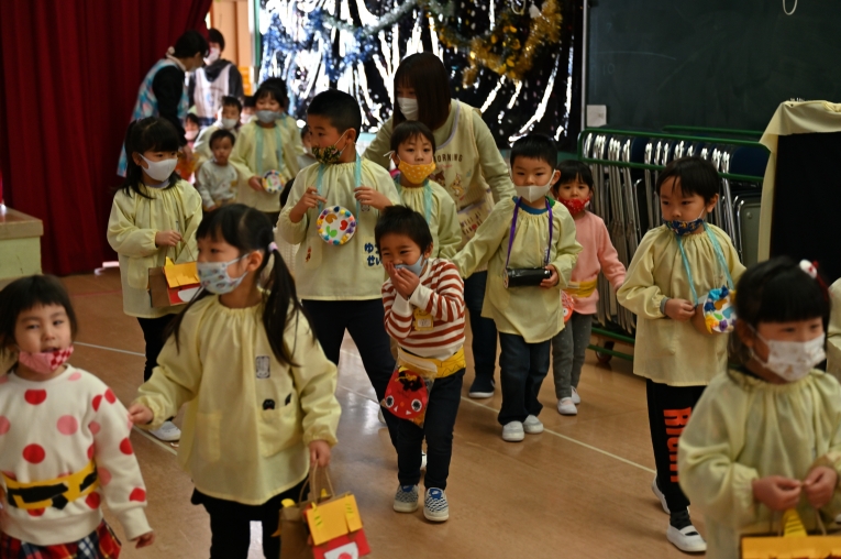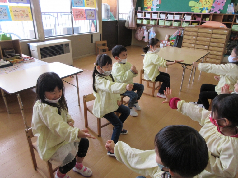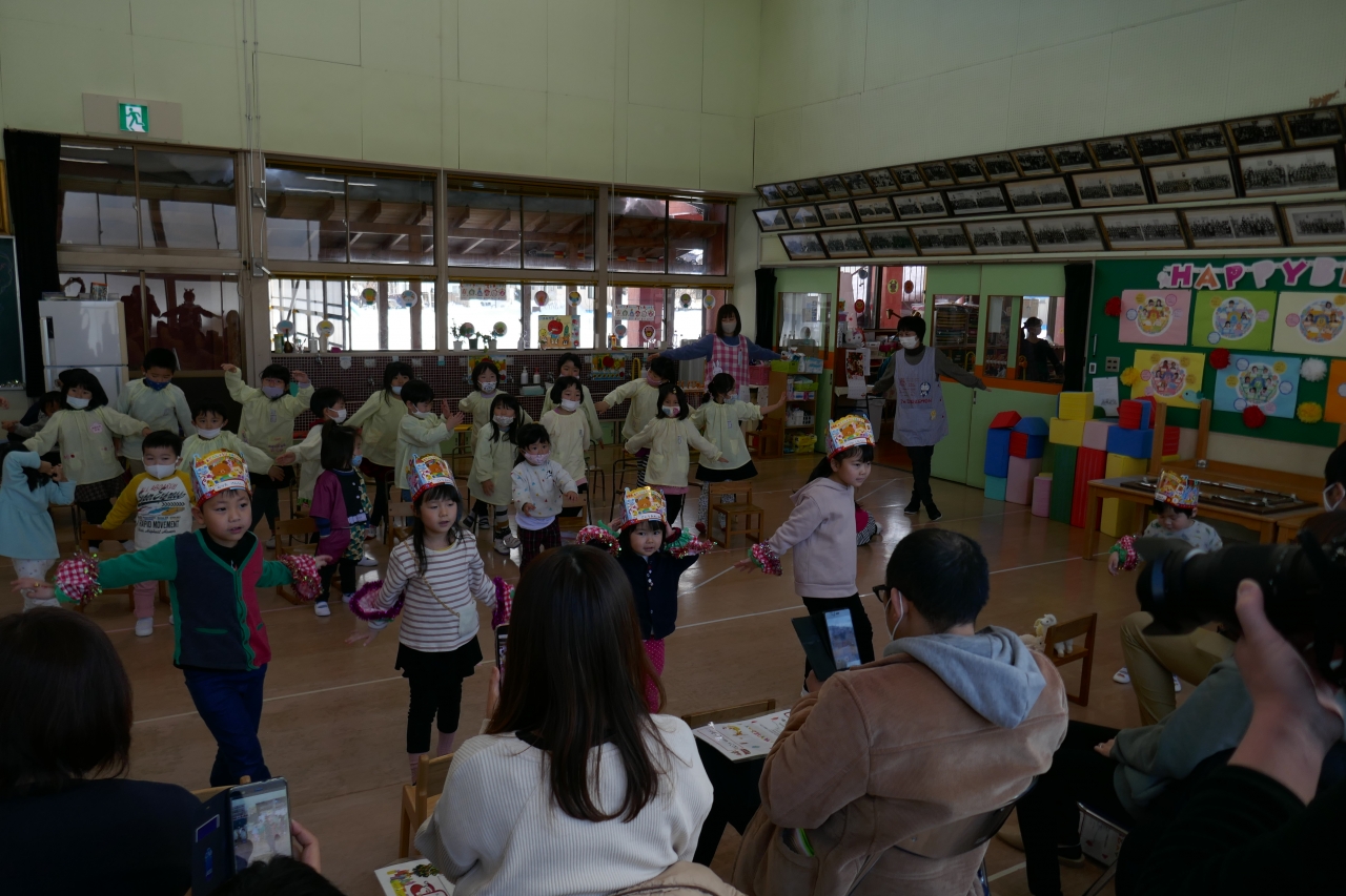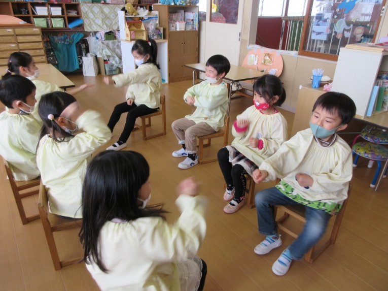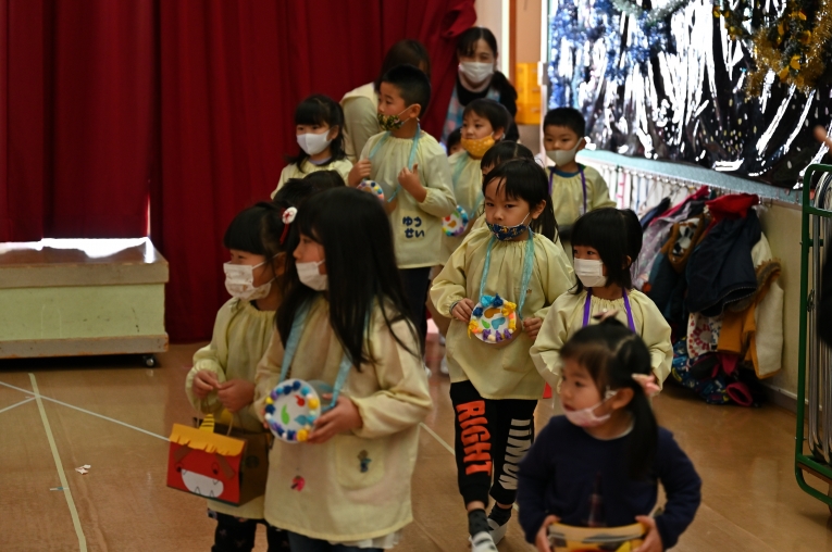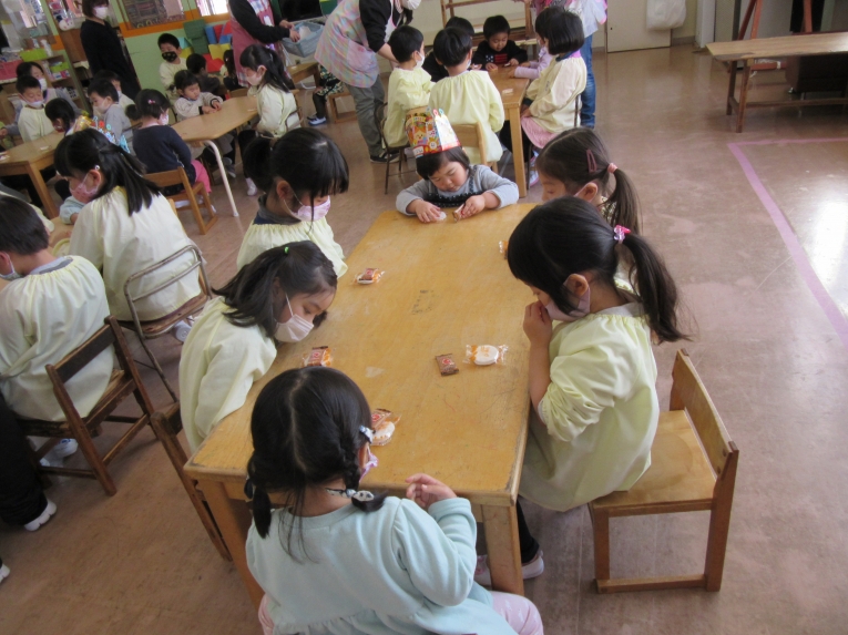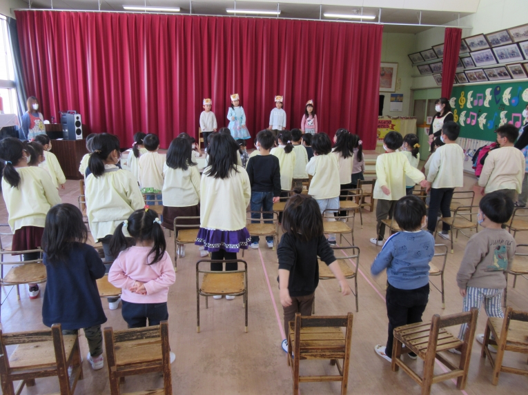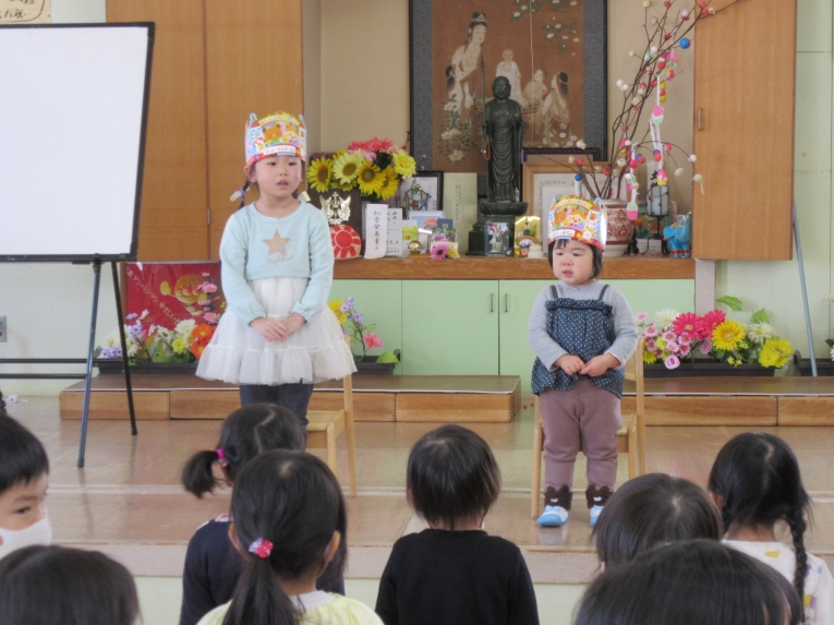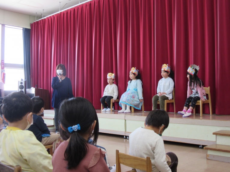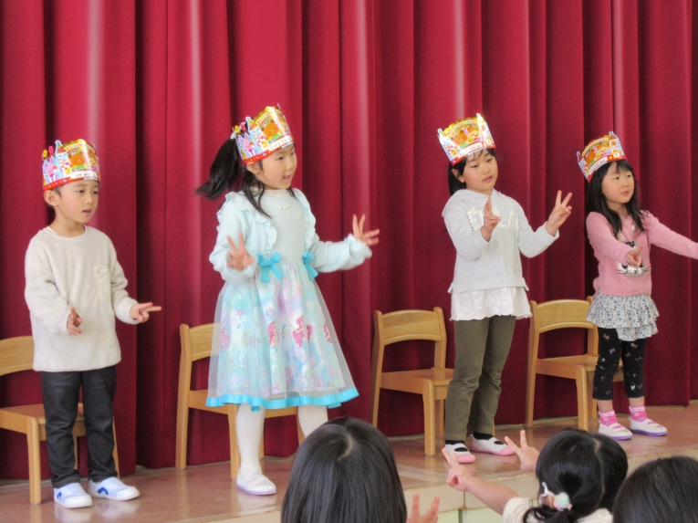 今月は4名のお友達のお祝いでした入場では、元気な声でお返事してくれました