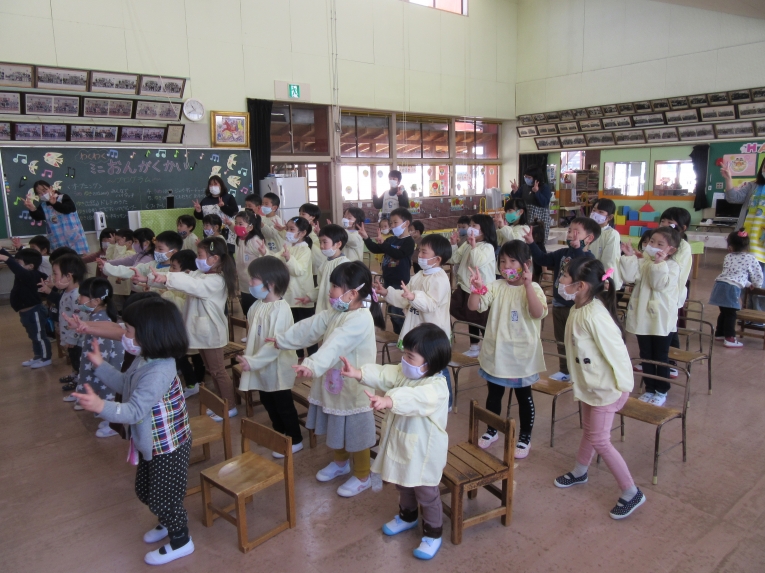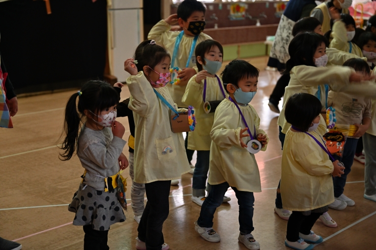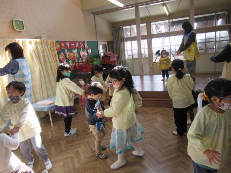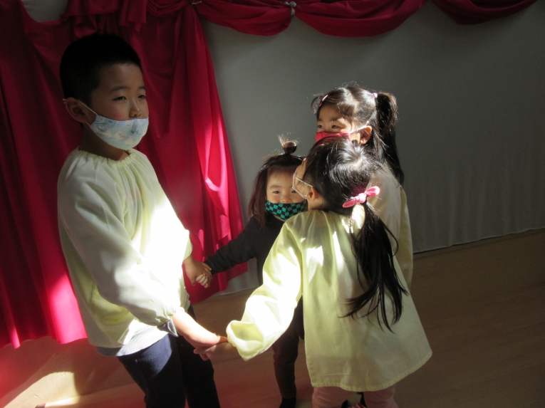 子どもたちのふれあい遊びも加わって楽しい出し物でした。