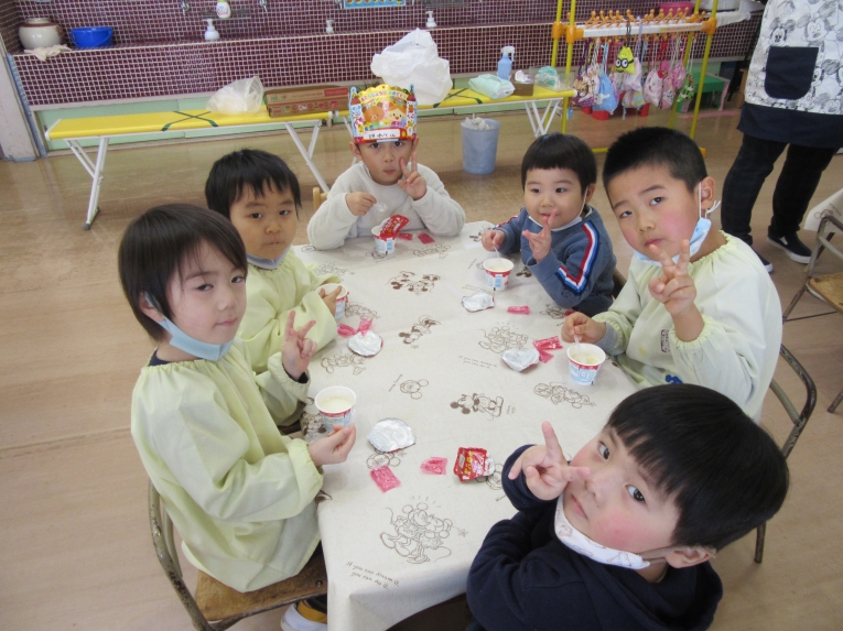 「ハッピーおめでとう、ありがとう♪」のうたを歌ってお祝いしました