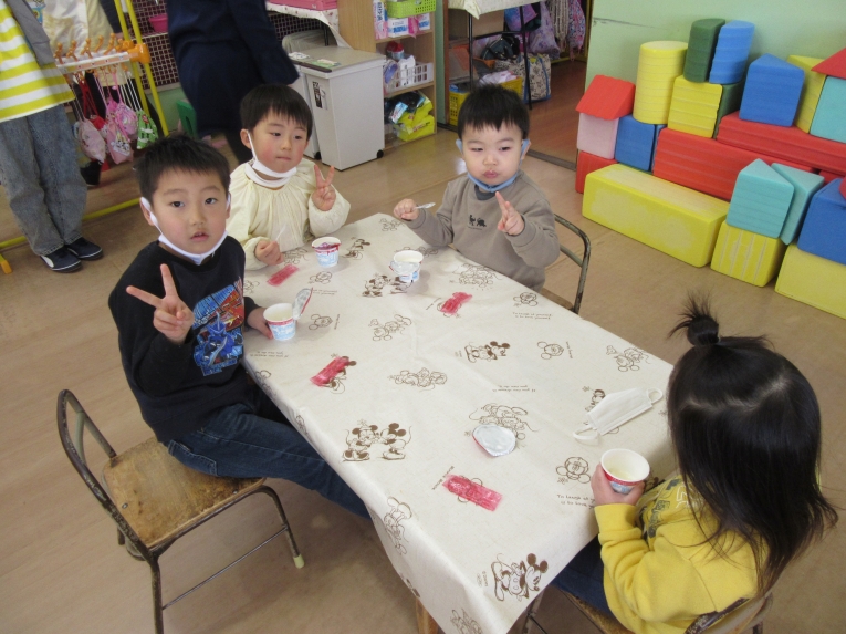 最後は皆でおやつを食べたよ!!ヨーグルトおいしかったね