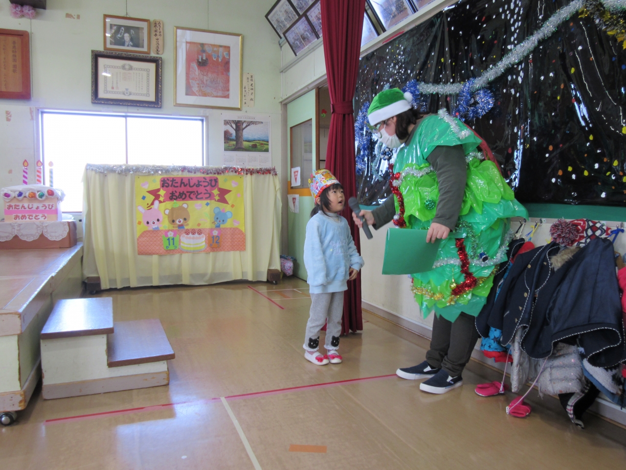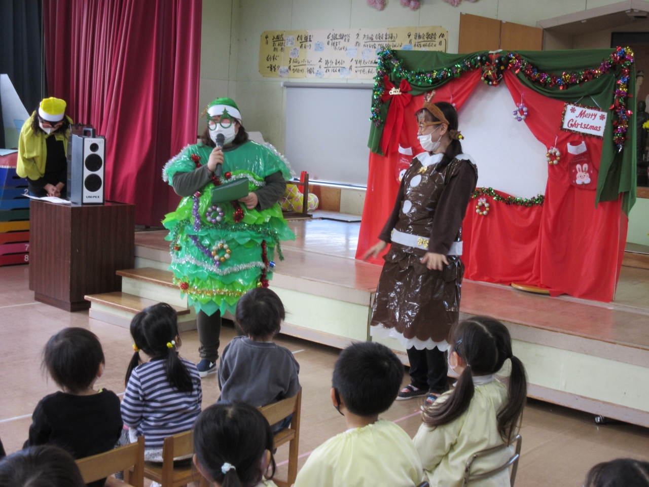 今回は、クリスマスにちなんで、「ツリーマン」と「トナカイさん」がゲストで来てくれました。妖精さんもお手伝いしてくれました。