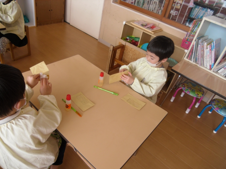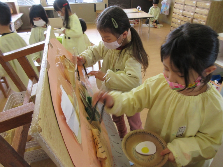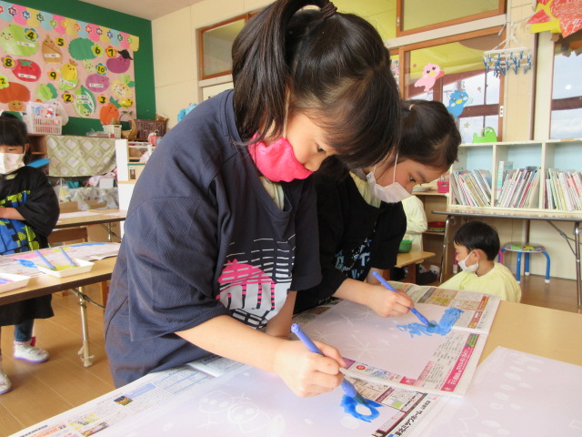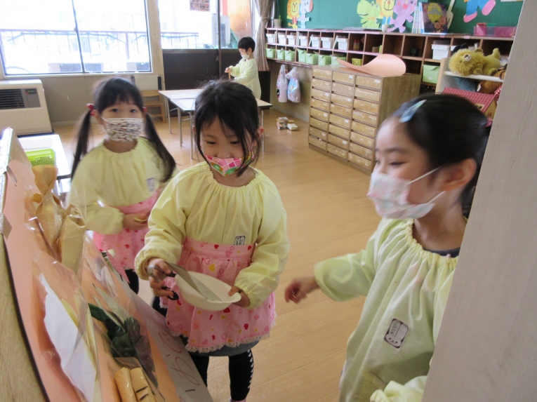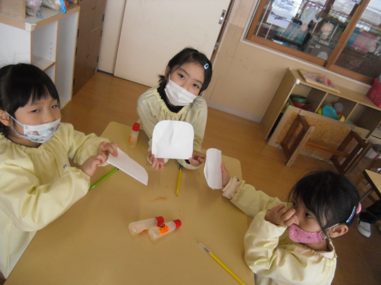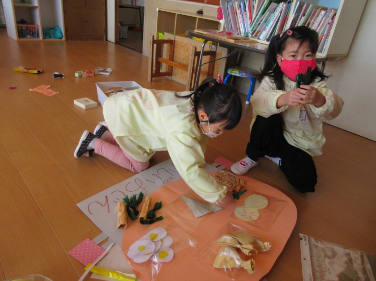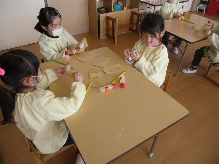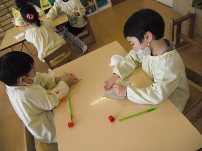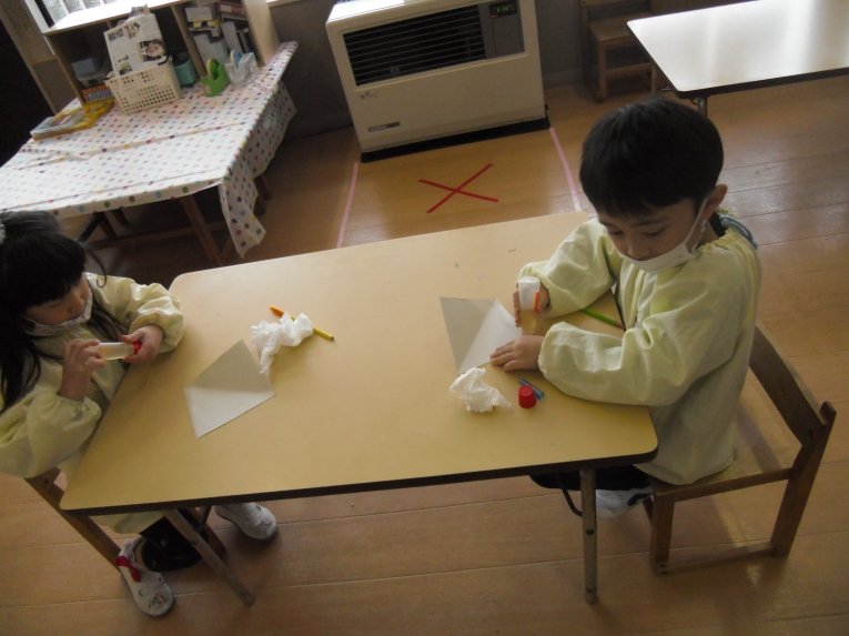 2月2日(火)の節分に向け、今までとは取り組みを変えて、年長組の子どもたちが話し合い、どんな豆まきをしたいのかを決めました自分たちで色々な鬼を作ってみたいという事になり、たくさんのアイディアが出されました。そこで下の学年の子どもたちにも協力してもらい、クラスごと、大きな鬼の共同制作を行いました。ゆきぐみは、怒りんぼ鬼