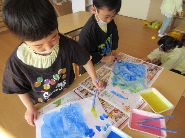 翌週は「コロコロローラー」で遊びます♬ 筆や指とはまた違った感覚で面白いねー