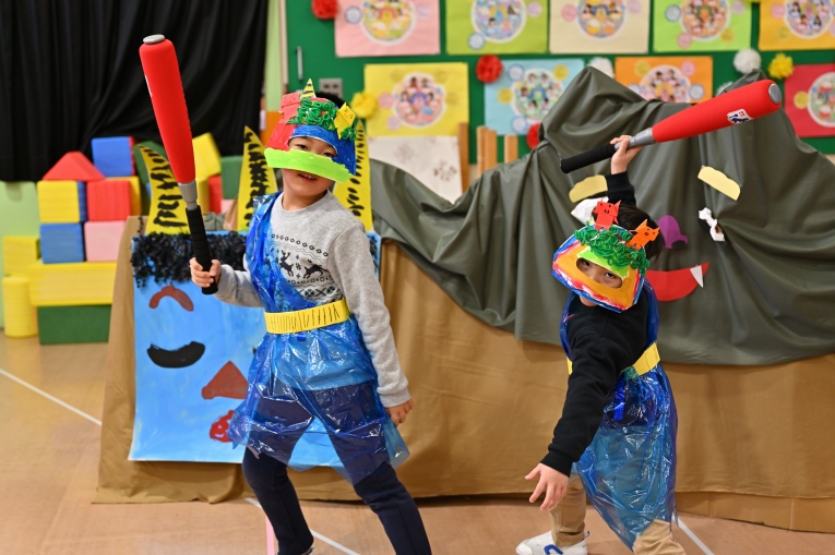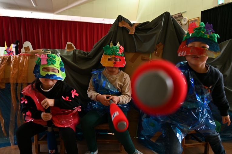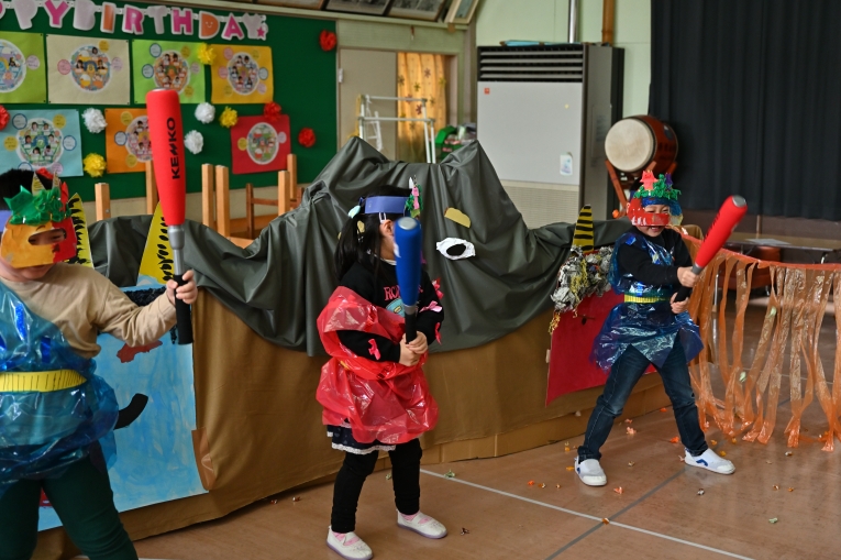 鬼さんが「まいりました~もう勘弁してください!!」というシーン鬼役のお友達、ほんとうにありがとう。上手だったよ
