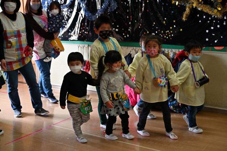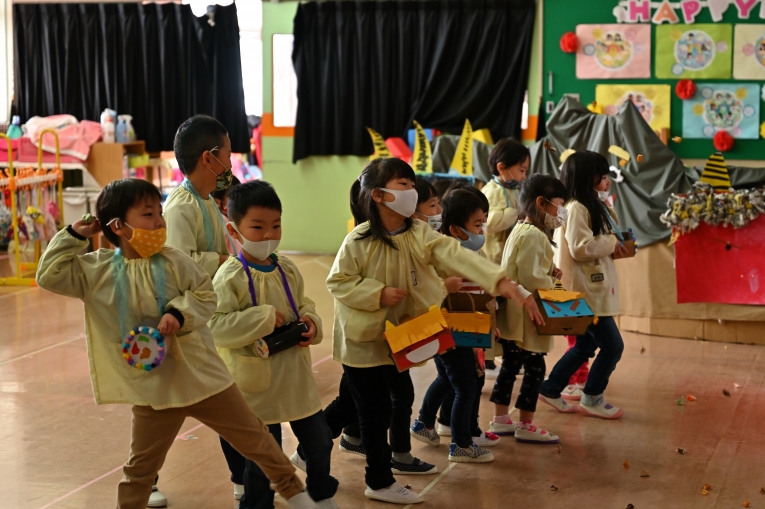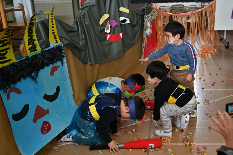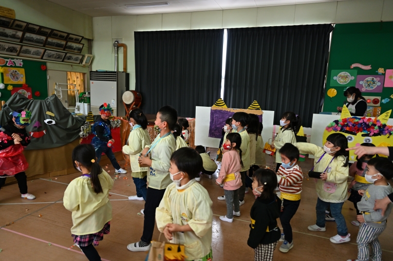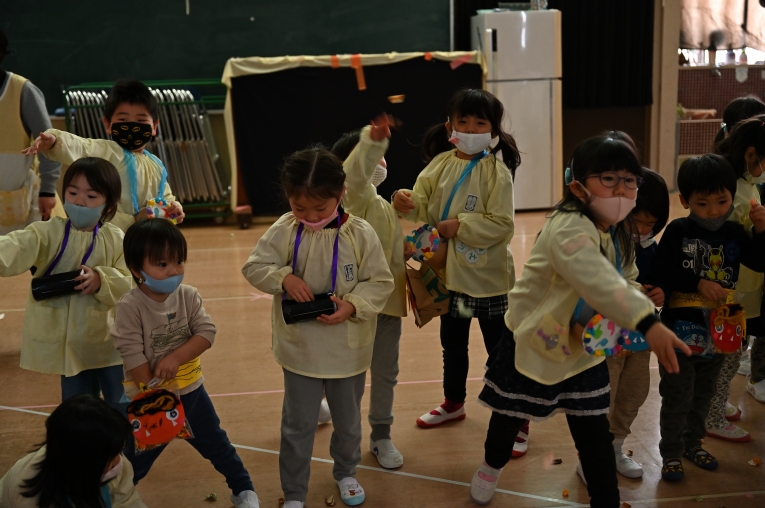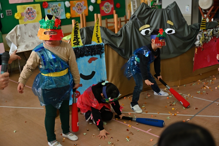 続きましては2グループめの豆まきが始まりました。鬼役の子も豆まきの子たちも入れ替わります