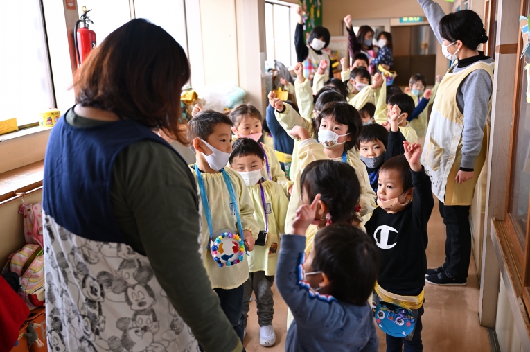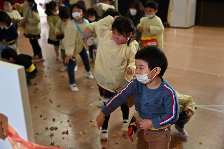 これから豆まき・・・期待と不安がいっぱいの子どもたち