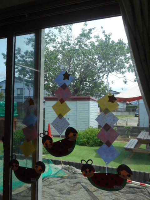 明日は七夕🎋ですね☆☆☆天気予報では…☔💦ですが…😿晴れないかなあーーのりで折り紙をつけて短冊飾りをつくりました!!お家で飾って楽しんでいただけていますか?