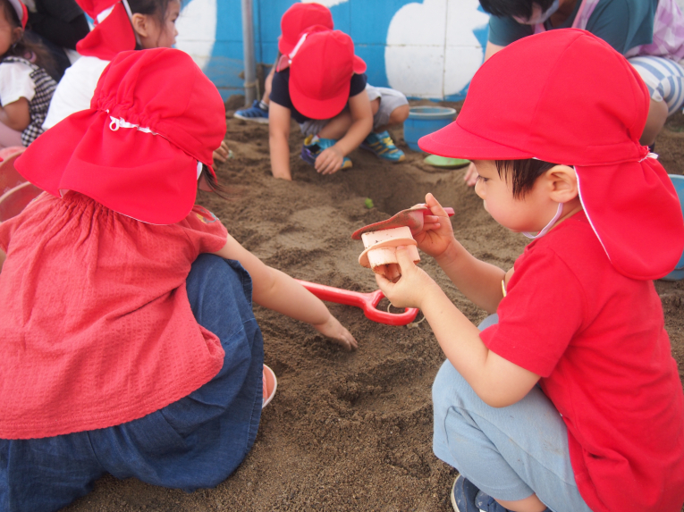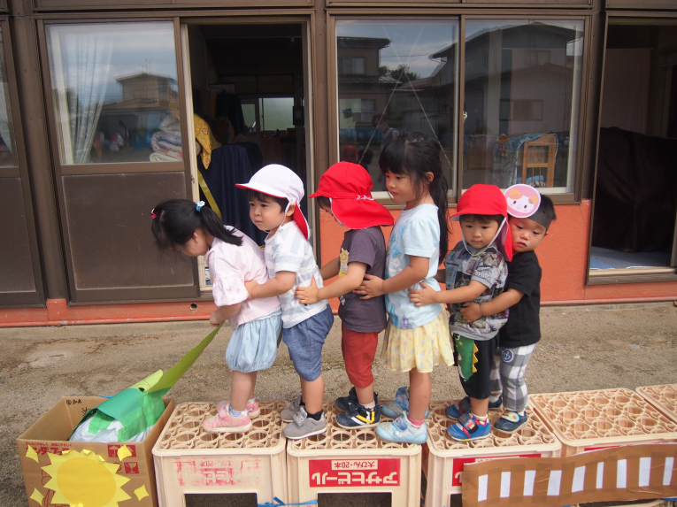 お友達やお兄ちゃんお姉ちゃんにつかまって、うんとこしょ、どっこいしょをしたり、