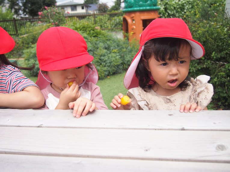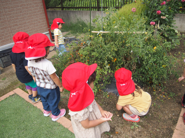 皆で収穫してありがとうバイバイをしました。最後のトマトピカピカであまくっておいしかったね