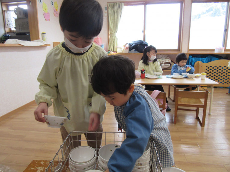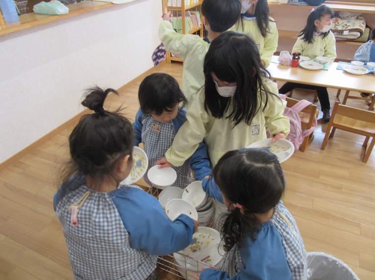 ごちそうさまの後は一緒にお片付け。手取り足取り教えてくれます。優しいね