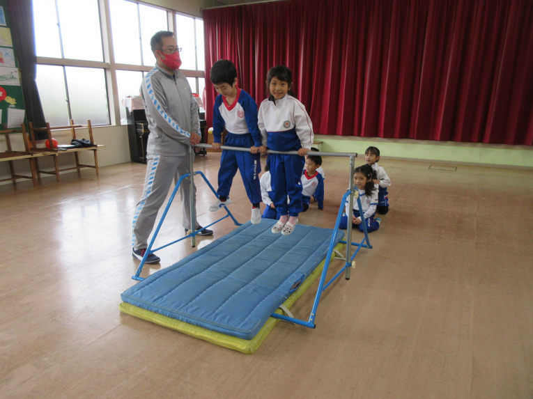 体操教室では、鉄棒や縄跳びにチャレンジ