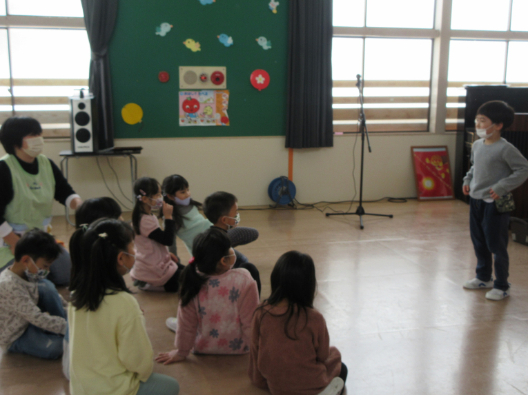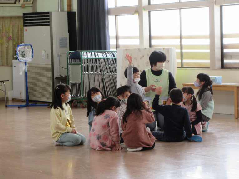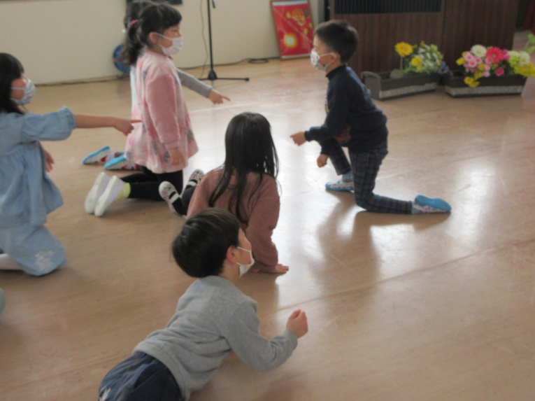 楽しい遊びはまだまだ!卒園式の練習の合間に、ジェスチャーゲーム!