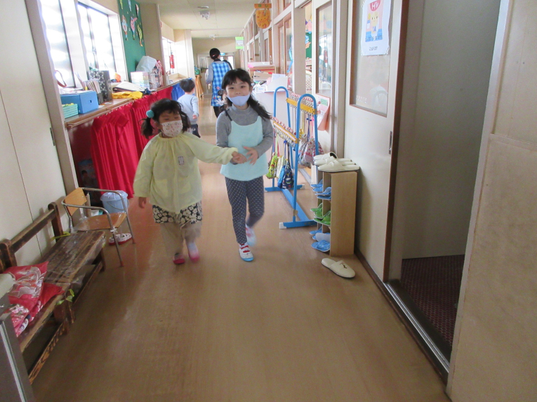 ゆき組がうめ組さんを探します!「あれ?どこだー??」幼稚園ってこんなに広かった?と探し回ります