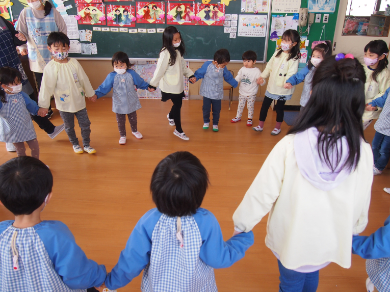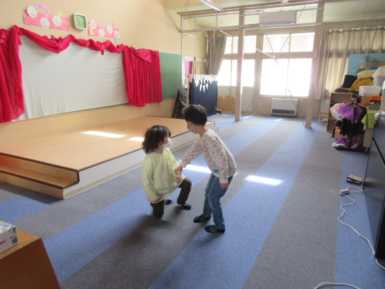 ゆき組さんが、よく来たねってすぐに手をつないでくれました。ちょっと広がって、一緒に踊ってあそんだよ