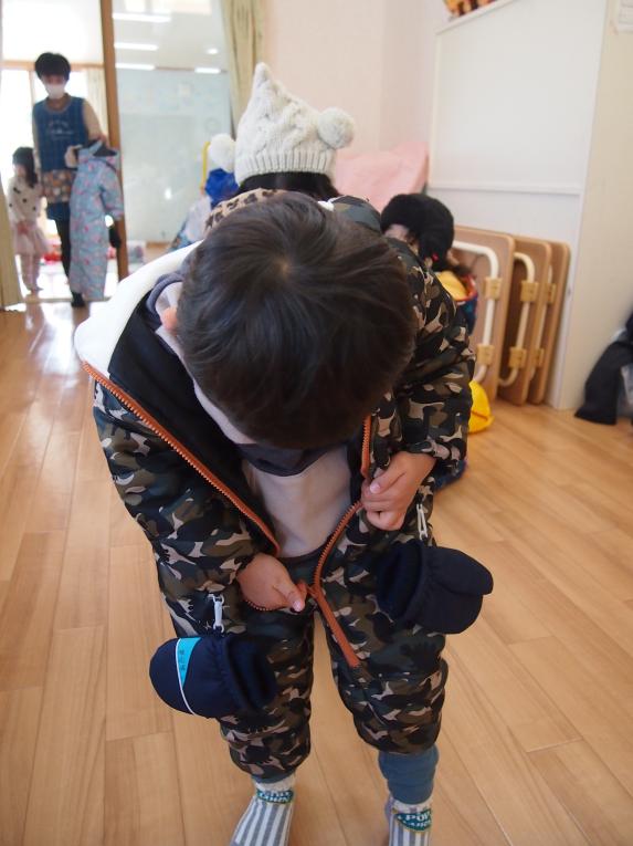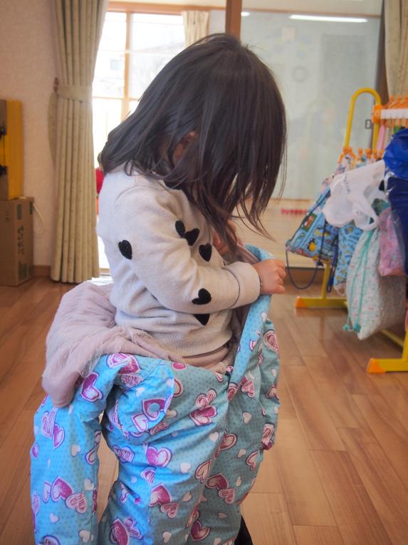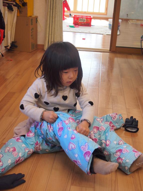 何回も雪遊びをしているうちに、着替えも自分で出来るようになってきました。
