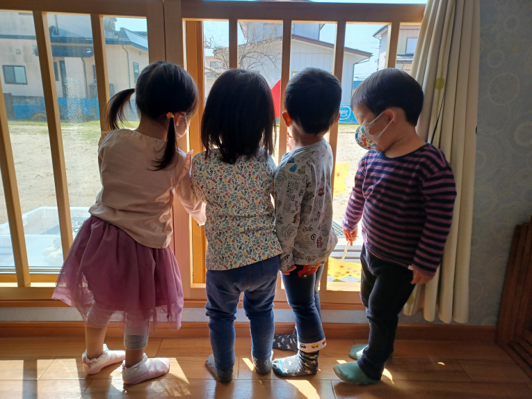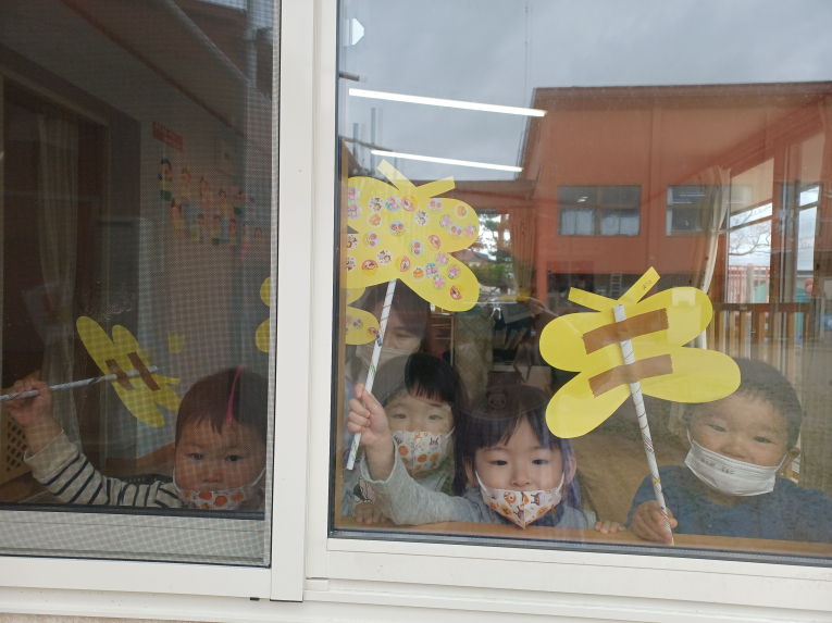 みんな、お外に「ちょうちょいないかな~?」と外を探している様子です