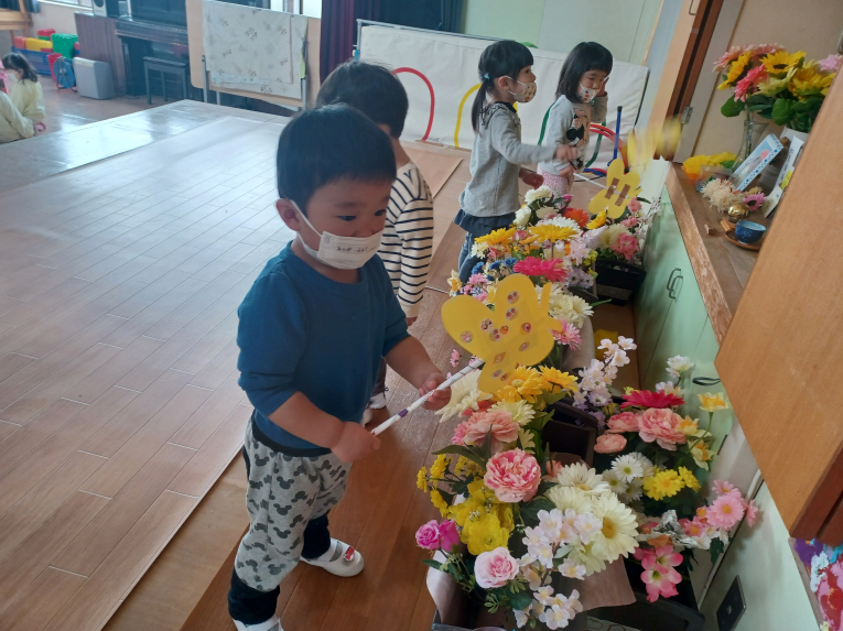 あんなにあった幼稚園の雪もすっかり消えて、園庭では虫や花たちが子供たちを待っています