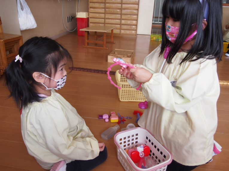 早速、線路をつくったりお医者さんごっこをしたり、ままごとやお人形で遊んだりと盛り上がっています!!