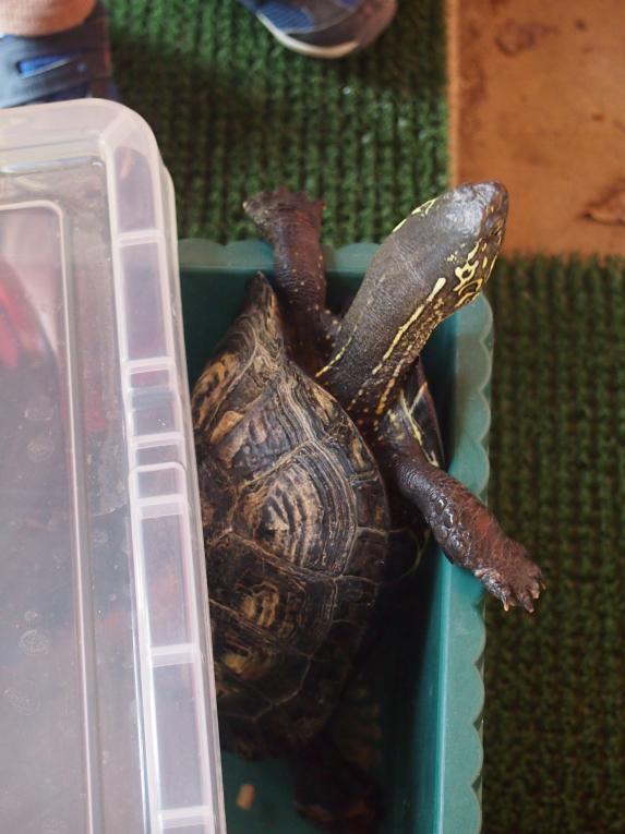 冬の間、冬眠していたカメさんが目を覚ましましたよ!!🐢のこのこ…と動いて一生懸命登ろうとしています。