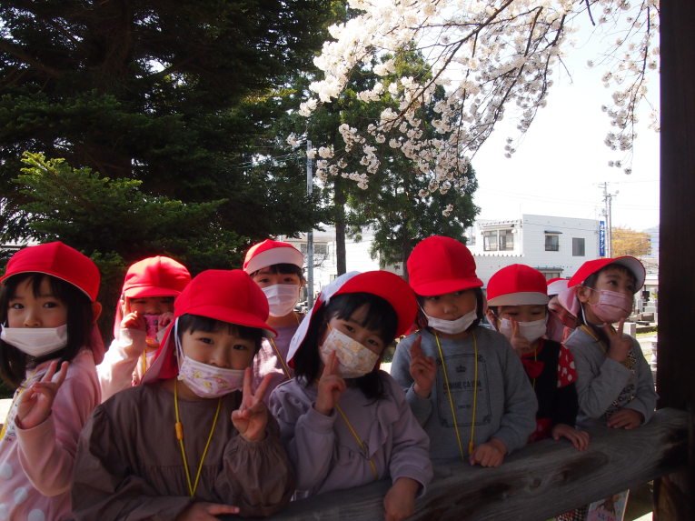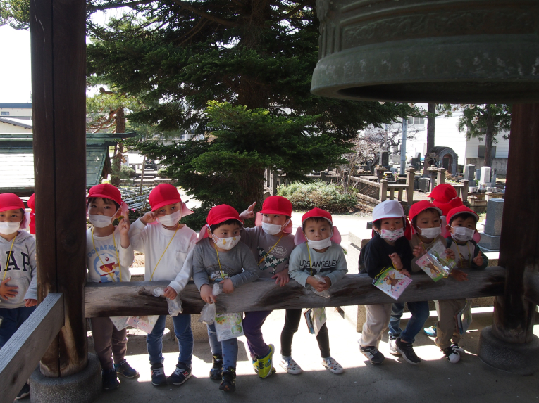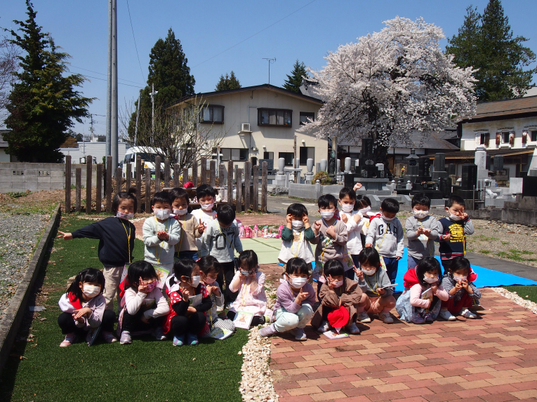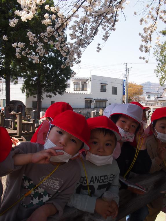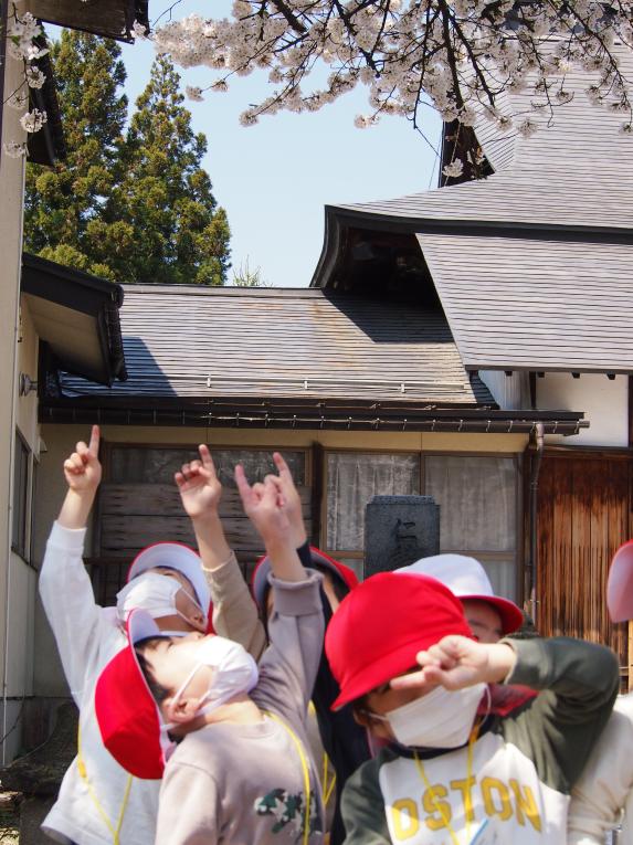 今年は園長先生のおうちの桜を見に行きました!!お寺での本格的なお花見!!