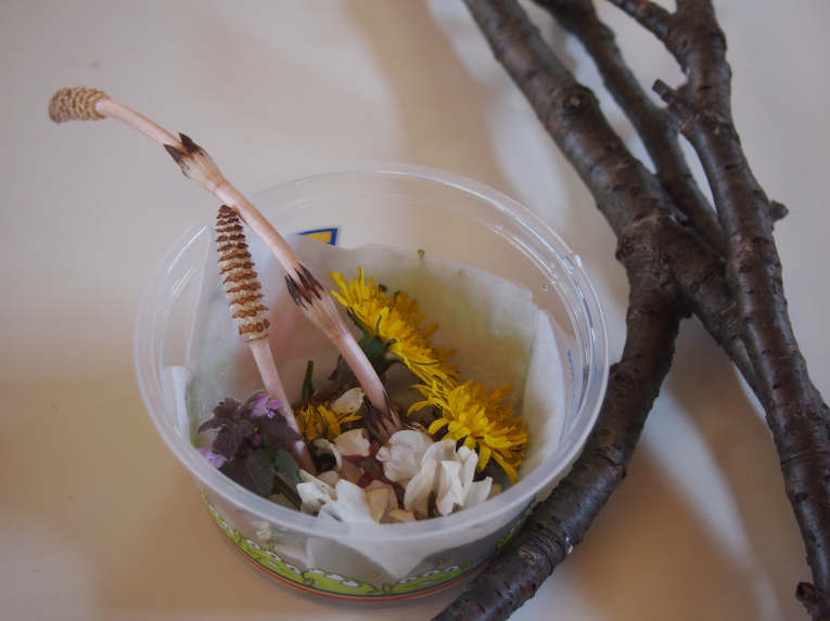 🌸さくらに、つくし、たんぽぽ、ひめおどりこそう、桜の枝。素敵なおみやげです(*´ω`*)