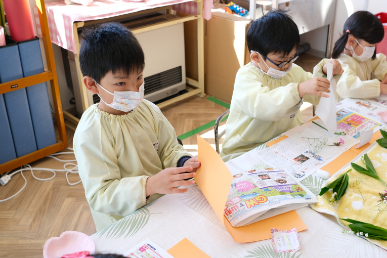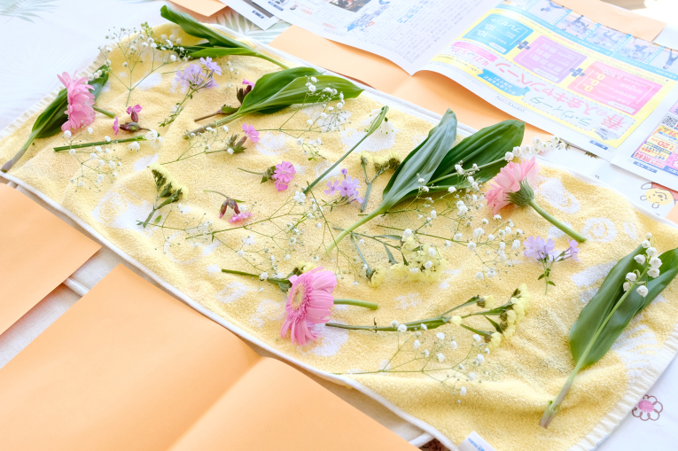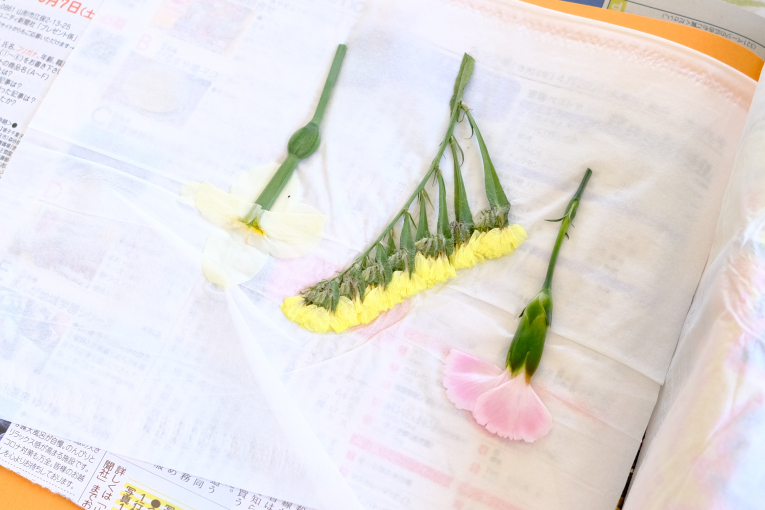 好きなお花を選んで優しくティッシュのお布団をかけて「電話帳」の間に挟んでいきます