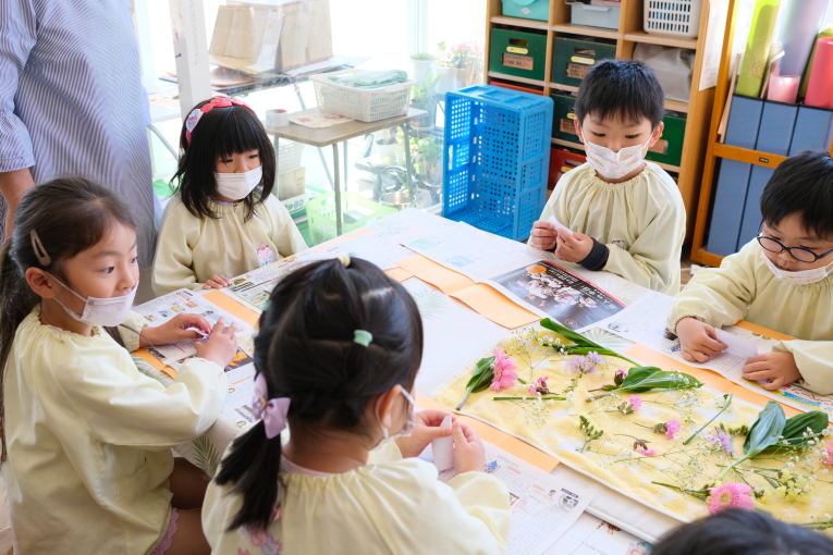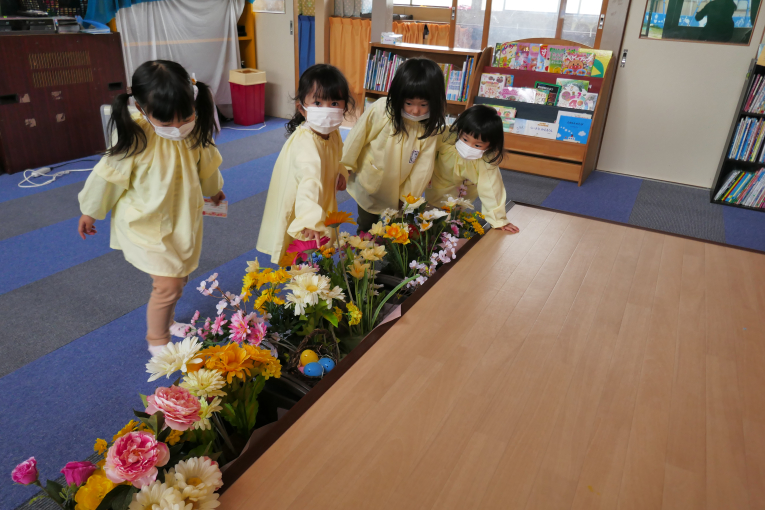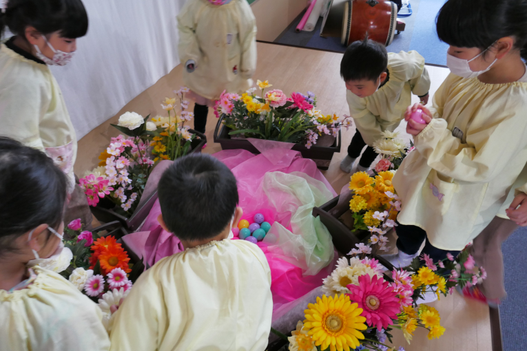 幼稚園では5月8日に「はなまつり」があります。おしゃかさまのお誕生日をお祝いして、おうちから持ってきていただいたお花・・・